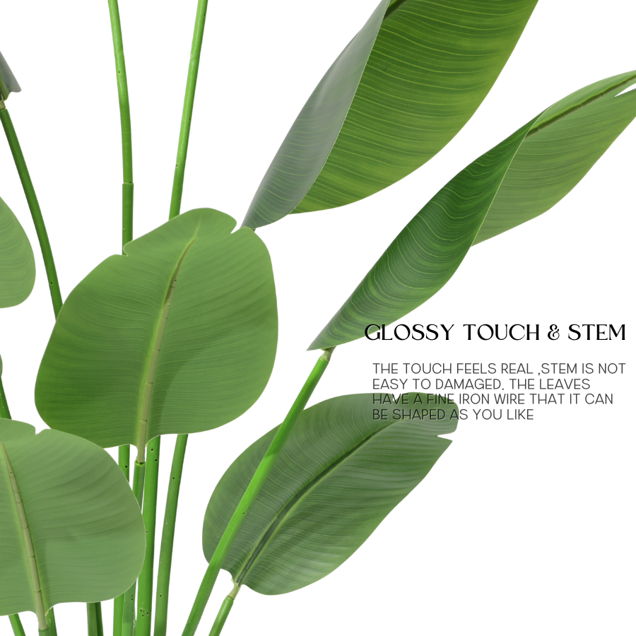 Φέρτε ρεαλιστική τροπική κομψότητα σε κάθε χώρο με την τεχνητή μας παλάμη ταξιδιού ανθεκτική στην υπεριώδη ακτινοβολία. Χειροποίητη με οργανικά φύλλα και υλικά ανθεκτικά στο ξεθώριασμα, αυτή η αποσπώμενη γλάστρα προσφέρει εύκολη συναρμολόγηση και εκλεπτυσμένο στυλ για εσωτερική και εξωτερική χρήση. Διαστάσεις και Συντήρηση Ύψος: 180 cm (μετρημένο από τη βάση της γλάστρας έως την άκρη του ψηλότερου φύλλου περίπου 2 cm) Σημείωση: Ανακινήστε απαλά τα φύλλα μετά την αποσυσκευασία. Ο αποσπώμενος σχεδιασμός επιτρέπει την εύκολη συναρμολόγηση/αποσυναρμολόγηση για αποθήκευση ή μεταφορά, χωρίς να απαιτούνται εργαλεία. Απλώς ευθυγραμμίστε και συνδέστε την κύρια ράβδο ταιριάζοντας τα αυτοκόλλητα με τον ίδιο αριθμό στο πάνω και κάτω άκρο για να ολοκληρώσετε την εγκατάσταση. Ξεκολλήστε τα αυτοκόλλητα μετά τη συναρμολόγηση. Ηλιακό φως: Για εξωτερική χρήση, τοποθετήστε την σε σκιερό μέρος για να διατηρήσετε το χρώμα των φύλλων. Η εσωτερική βιτρίνα ευδοκιμεί σε έντονο, έμμεσο φως. Καθαρισμός: Σκουπίστε τη σκόνη από τα φύλλα με ένα μαλακό, στεγνό πανί ή χρησιμοποιήστε έναν ψεκαστήρα πεπιεσμένου αέρα χαμηλής πίεσης. Αποθήκευση: Αποσυναρμολογήστε σε μέρη και αποθηκεύστε την σε επίπεδη επιφάνεια σε ένα στεγνό, χωρίς σκόνη δοχείο. Αποφύγετε την έντονη κάμψη των φύλλων για να διατηρήσετε το σχήμα τους. Γιατί να μας επιλέξετε; Συνδυάζουμε την εμπνευσμένη από τη φύση τέχνη με λειτουργικό σχεδιασμό. Κάθε Travel Palm έχει σχεδιαστεί για να προσφέρει: Εύκολη συναρμολόγηση και αποσυναρμολόγηση: Χωρίζεται σε τμήματα βάσης και φύλλου για εύκολη εγκατάσταση, ιδανικό για οικιακούς, εκδηλωτικούς ή εμπορικούς χώρους. Αντοχή σε όλες τις καιρικές συνθήκες: Τα υλικά που είναι ανθεκτικά στην υπεριώδη ακτινοβολία εμποδίζουν το ξεθώριασμα σε εσωτερικούς χώρους ή σε στεγασμένους εξωτερικούς χώρους (π.χ., βεράντες, δίπλα στην πισίνα). Βοτανικός ρεαλισμός: Μεγάλα, ρεαλιστικά φύλλα με φυσική υφή και καμπύλες άκρες για αυθεντική τροπική εμφάνιση. Πολυτέλεια χαμηλής συντήρησης: Ελαφριά κατασκευή—χωρίς πότισμα, κλάδεμα ή μαρασμό. Απλώς ξεσκονίστε για να ανανεώσετε Ιδανικό για: Διακόσμηση Σπιτιού & Βεράντας: Προσθέστε μια τροπική πινελιά σε σαλόνια, βεράντες ή εξωτερικούς χώρους χαλάρωσης με πλούσια βλάστηση από το δάπεδο μέχρι την οροφή Εμπορικούς Χώρους: Βελτιώστε τα λόμπι ξενοδοχείων, τα εστιατόρια με τροπικό θέμα ή τα λόμπι θέρετρων με εντυπωσιακά φυτά Στυλ Εκδηλώσεων: Δημιουργήστε εξωτικά σκηνικά γάμου, διακοσμήσεις για πάρτι luau ή εγκαταστάσεις φωτογραφικού θαλάμου με θέμα τη ζούγκλα Έργα DIY: Προσαρμόστε το ύψος ή τη διάταξη αποσπώντας/επανατοποθετώντας τμήματα φύλλων για μοναδικές παρουσιάσεις Σχεδιασμός φιλικός προς τον ενοικιαστή: Εύκολη αποσυναρμολόγηση για μετακίνηση, δεν απαιτείται μόνιμη εγκατάσταση ή βαριά ανύψωση Εσωτερικοί χώροι με τροπικό θέμα: Συμπληρώστε τη μποέμικη, παράκτια ή σαφάρι διακόσμηση με την αυθεντική αισθητική των φοινικών ταξιδιωτών Μοναδικά Πλεονεκτήματα Φορητό Μέγεθος: Το ύψος 1,80 μ. με αφαιρούμενα τμήματα φύλλων είναι ιδανικό για την αποθήκευση και τη μεταφορά των αντικειμένων σας. Αποσπώμενο επιτρέπει την εύκολη μεταφορά για εκδηλώσεις ή εποχιακές αλλαγές διακόσμησης Ρεαλιστικές λεπτομέρειες φυλλώματος: Τα φύλλα με φλέβες και φυσικές αποχρώσεις μιμούνται τα φρεσκοκομμένα φύλλα φοίνικα ταξιδιωτών Φωτογραφικό εφέ: Τα δραματι