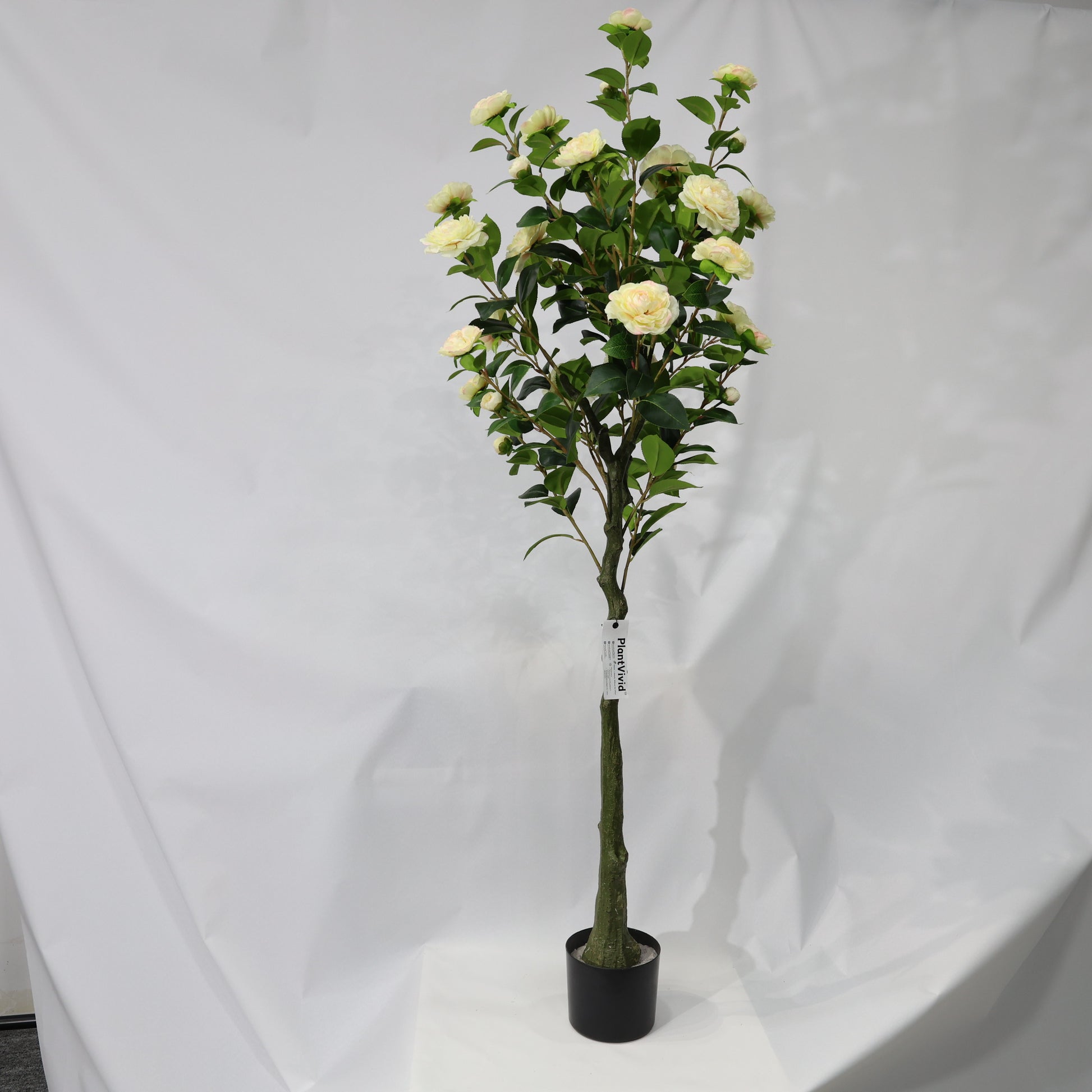 150cm Single-Stem Camellia Tree Champagne Blossoms Fixed Realistic Artificial Plant