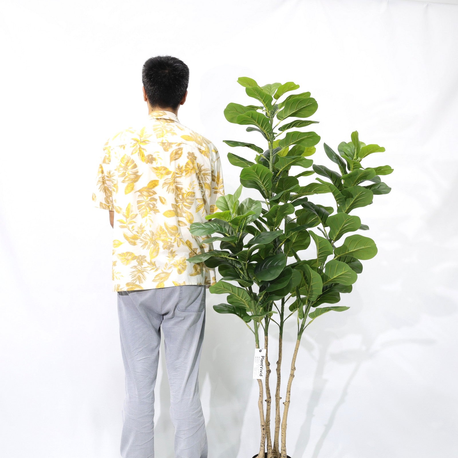 · Four-Head Lushness: Four bushy clusters of oversized fiddle leaves with realistic veining and natural curved edges