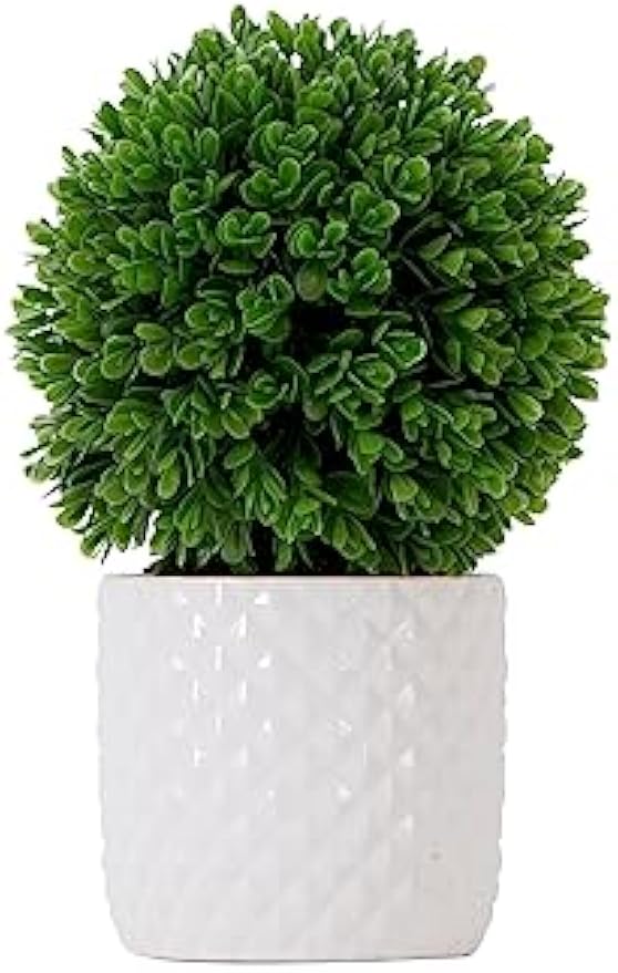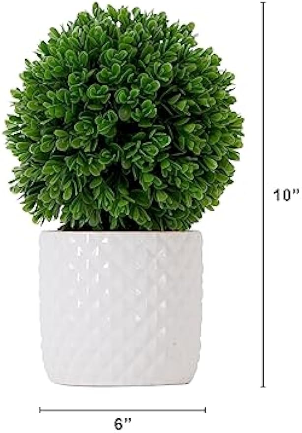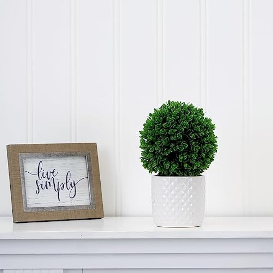 Posh and refined, elevate your home office with our artificial boxwood plant sure to deliver an enhanced look. Inspired by nature, this piece is shaped into a topiary for a taste of traditional aesthetics. Crafted from high-quality materials by expert horticulturists, this piece requires zero maintenance and looks incredibly lifelike. Standing 10" from a decorative planter, it can be displayed on any desktop to instantly add some life. Perfect for a coworker or as a housewarming gift.