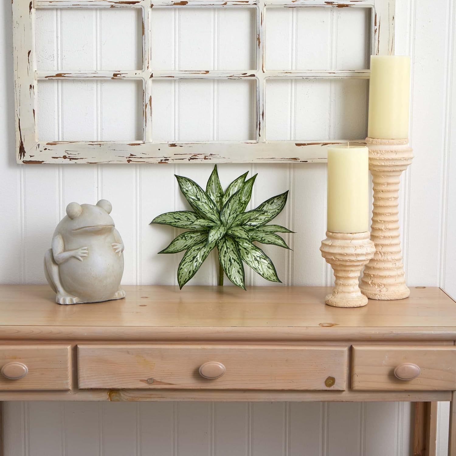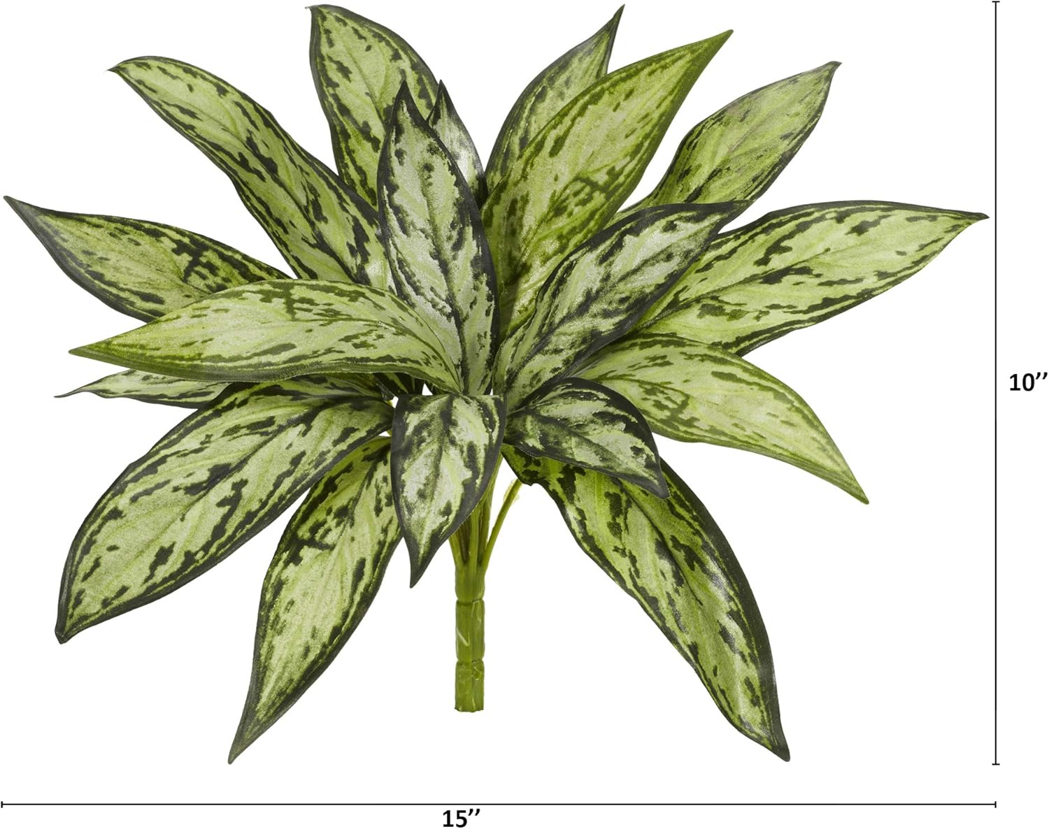 Greenify all parts of your home or office with this set of artificial silver queen stems, each showcasing variegated greens leaves that naturally splay outwards with lifelike precision. Rich in color and lush in foliage. Arrives in a set of six, each of these loose stems reach 10in. tall, making for effortless display options.