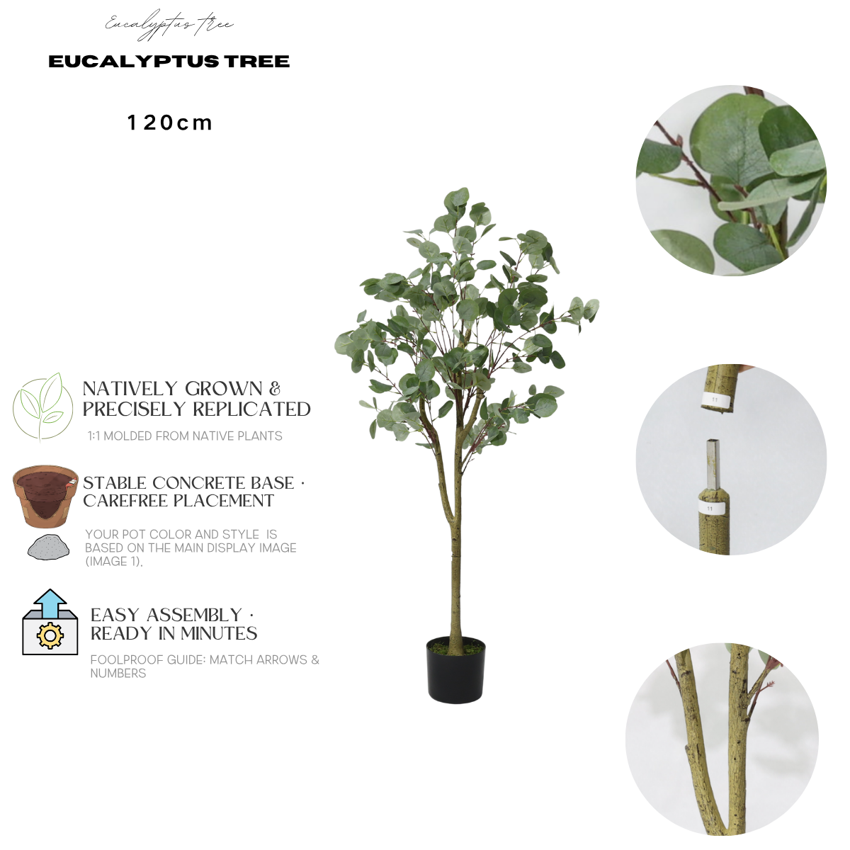 Προσθέστε ρεαλιστική φρεσκάδα σε κάθε χώρο με τον τεχνητό ευκάλυπτο μας, ανθεκτικό στην υπεριώδη ακτινοβολία. Χειροποίητο με οργανικό πράσινο φύλλωμα, υλικά ανθεκτικά στο ξεθώριασμα και αποσπώμενο σχεδιασμό, προσφέρει μια πινελιά αβίαστης κομψότητας για εσωτερική και εξωτερική χρήση.