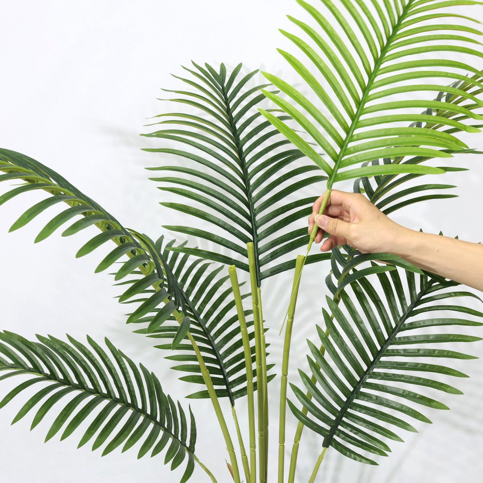 · Lush 3-Head Realism: Three bushy palm clusters with 9 lifelike fronds per head, mimicking natural areca palm density and growth patterns
