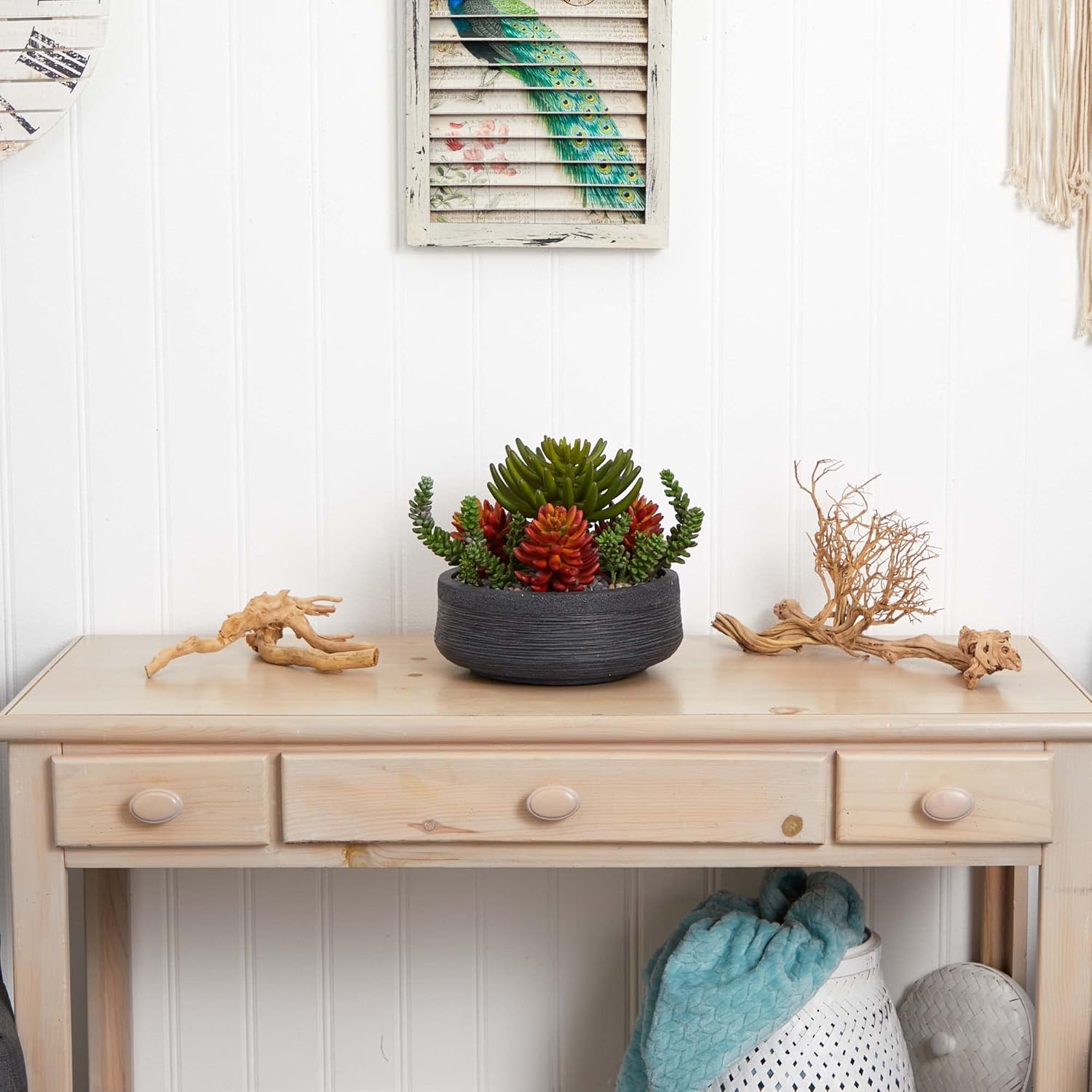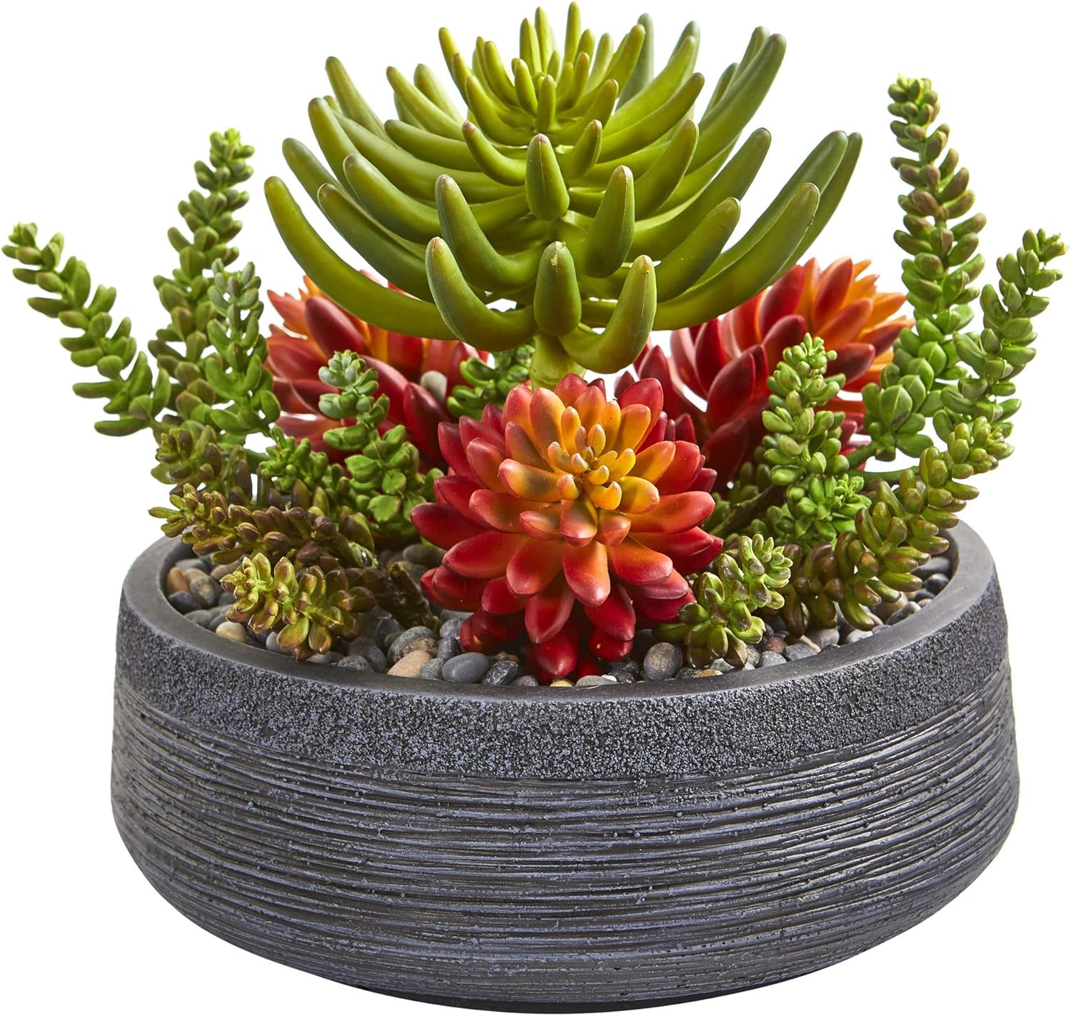 Flaunting a thick, spiky appearance, the succulent garden artificial plant in green and orange hues is complemented with a stylish black planter. With a height of 12 inches, it fits just about anywhere. You can place this on the center table of your living room, bedroom, or enclosed patio. To complete the look, settle a jute area rug below the table and position this piece on top as a centerpiece to sport a desert-chic look.