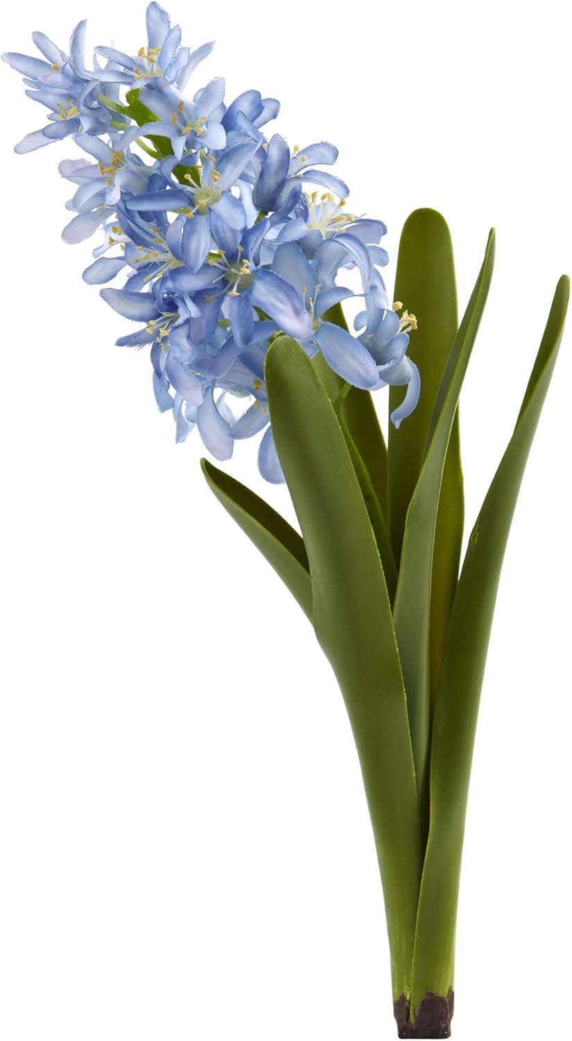 Stunning with its simplicity, this artificial hyacinth will make a beautiful centerpiece and will fit well in any setting. It features variegated flowers that gently peek out from its long green leaves. Place this set of four in an elegant vase for a lush look--add a colorful trivet underneath or separate the four and place each a in white vase and arrange them around your home.