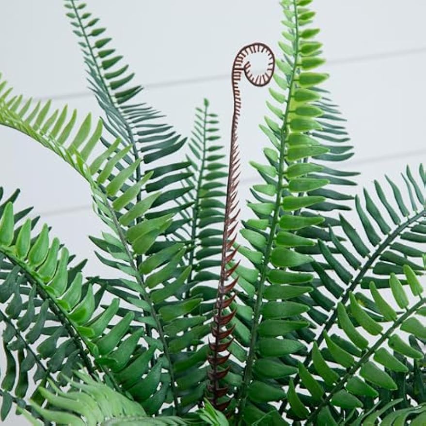 Elevate your indoor decor with the 16-inch Artificial Boston Fern Plant, perfectly nestled in a decorative cement planter. This exquisite artificial plant captures the essence of a lush, verdant Boston fern with meticulously crafted leaves that showcase remarkable attention to detail. Each leaf radiates a lifelike green hue, enhancing any room with a touch of nature-inspired beauty. Ideal for placement on nightstands, coffee tables, or office desks, this versatile fern adds a serene ambiance to any space. The flexible branches can be shaped and bent to achieve your desired look, allowing for personalized adjustments that fit perfectly within your decor. The robust, textured cement planter complements the vibrant greenery, grounding the piece with a modern, stylish flair. Whether you're looking to spruce up your home office, brighten a corner of your living room, or give a thoughtful gift, this artificial Boston fern is a superb choice. It's designed for decorative indoor use, ensuring lasting beauty without the need for maintenance. Transform any mundane space into a refreshing, green oasis with this stunning, realistic artificial plant.