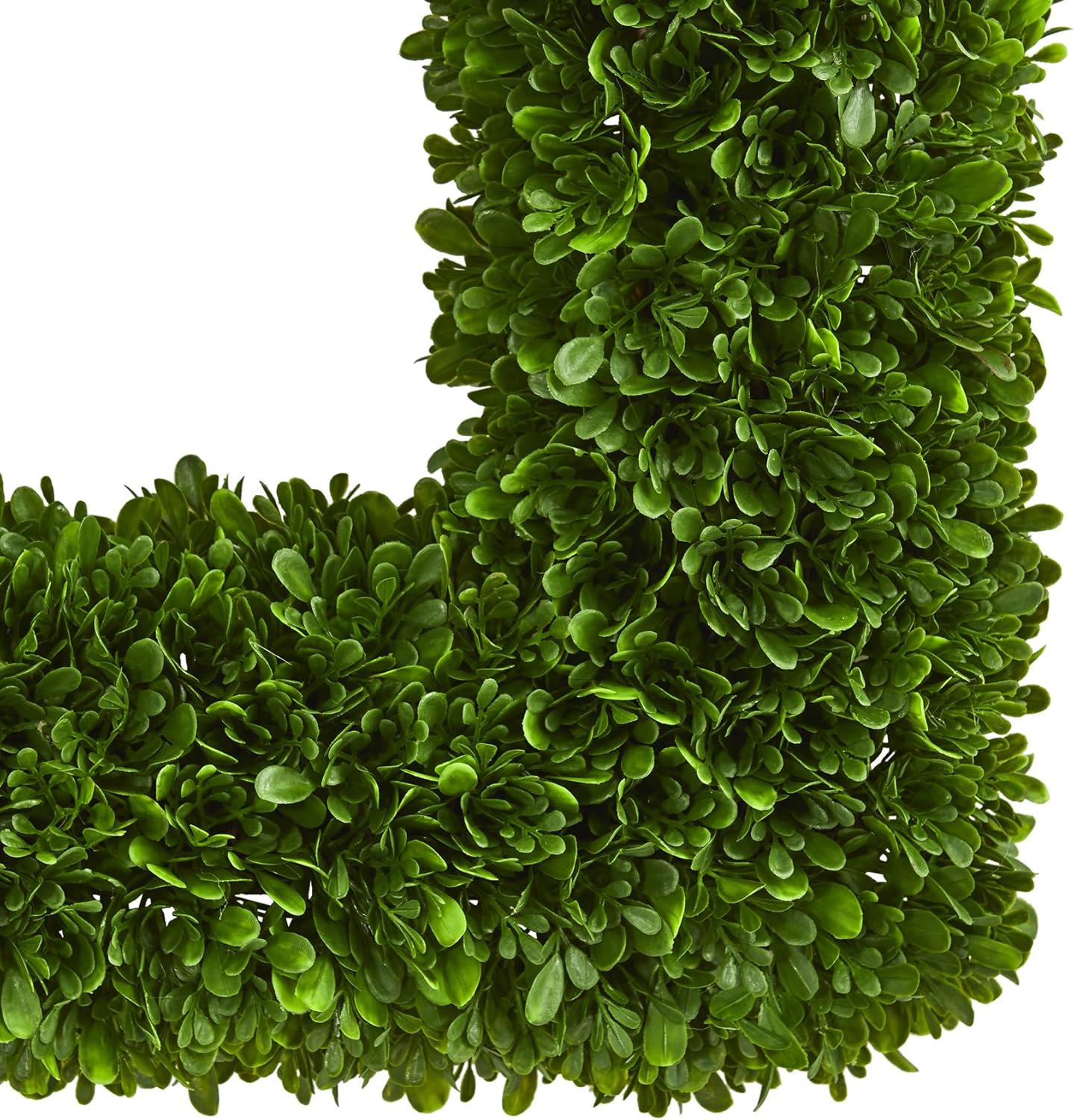 17" Tea Leaf Square Wreath UV Resistant Artificial Plant, Green
