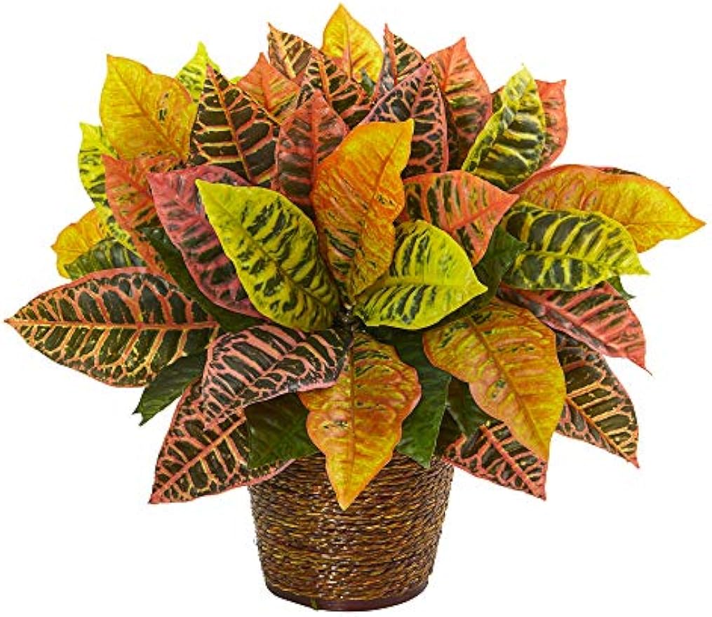 17in. Garden Croton Artificial Plant in Basket (Real Touch)