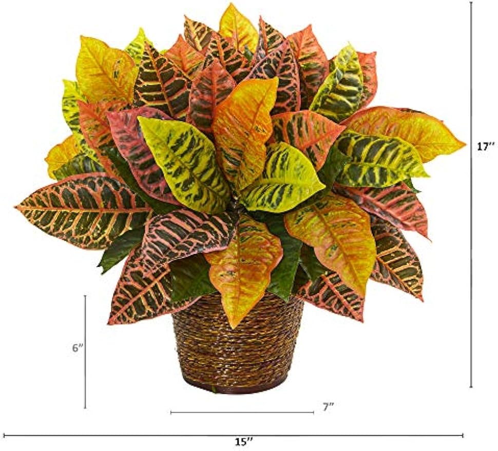 Add explosive colors to empty spaces with this artificial garden croton plant flaunting countless layers of fiery, realistic foliage in naturally occurring hues - all of which feel real to the touch. Standing 17” high from a basket planter, this multicolored plant can easily bring life to bare spaces.