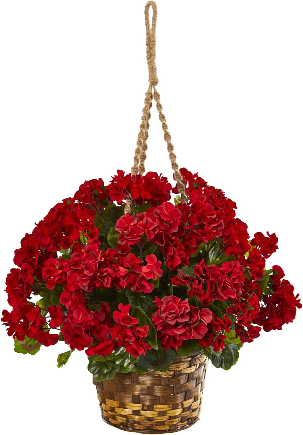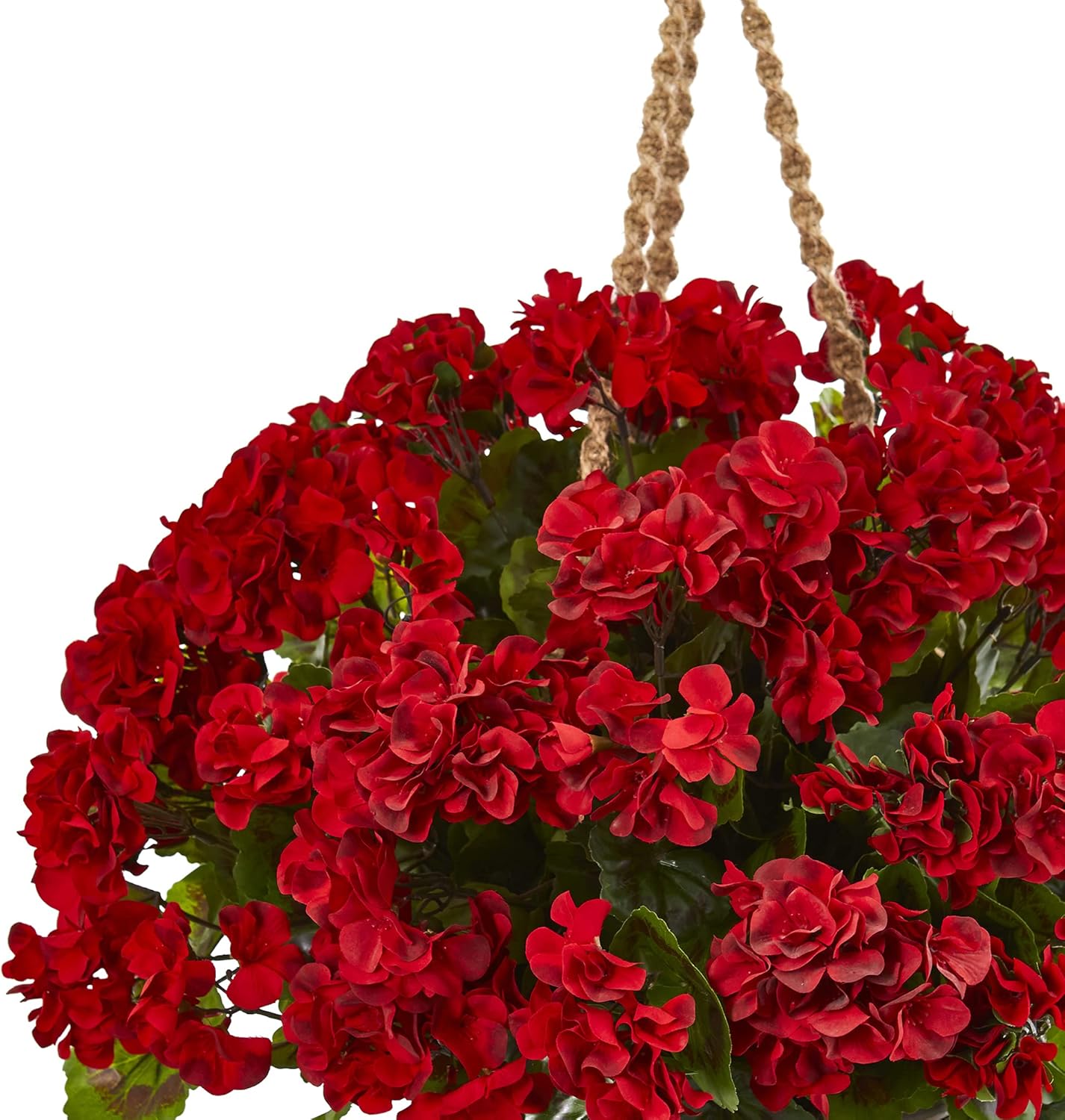 19in. Geranium Hanging Basket Artificial Plant UV Resistant (Indoor/Outdoor)