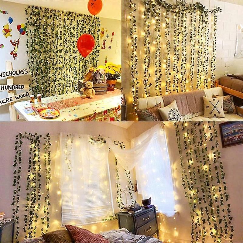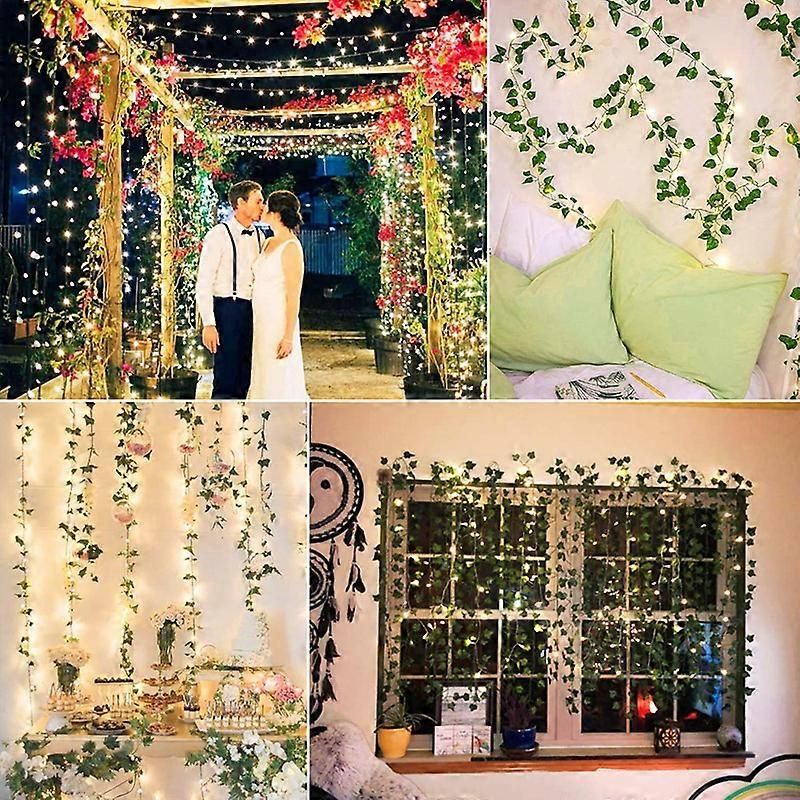 Safe and convenient: Ivy loops can be inserted anywhere at will; The LED strings are powered by low voltage and will not overheat after long time use and can be used for a long time