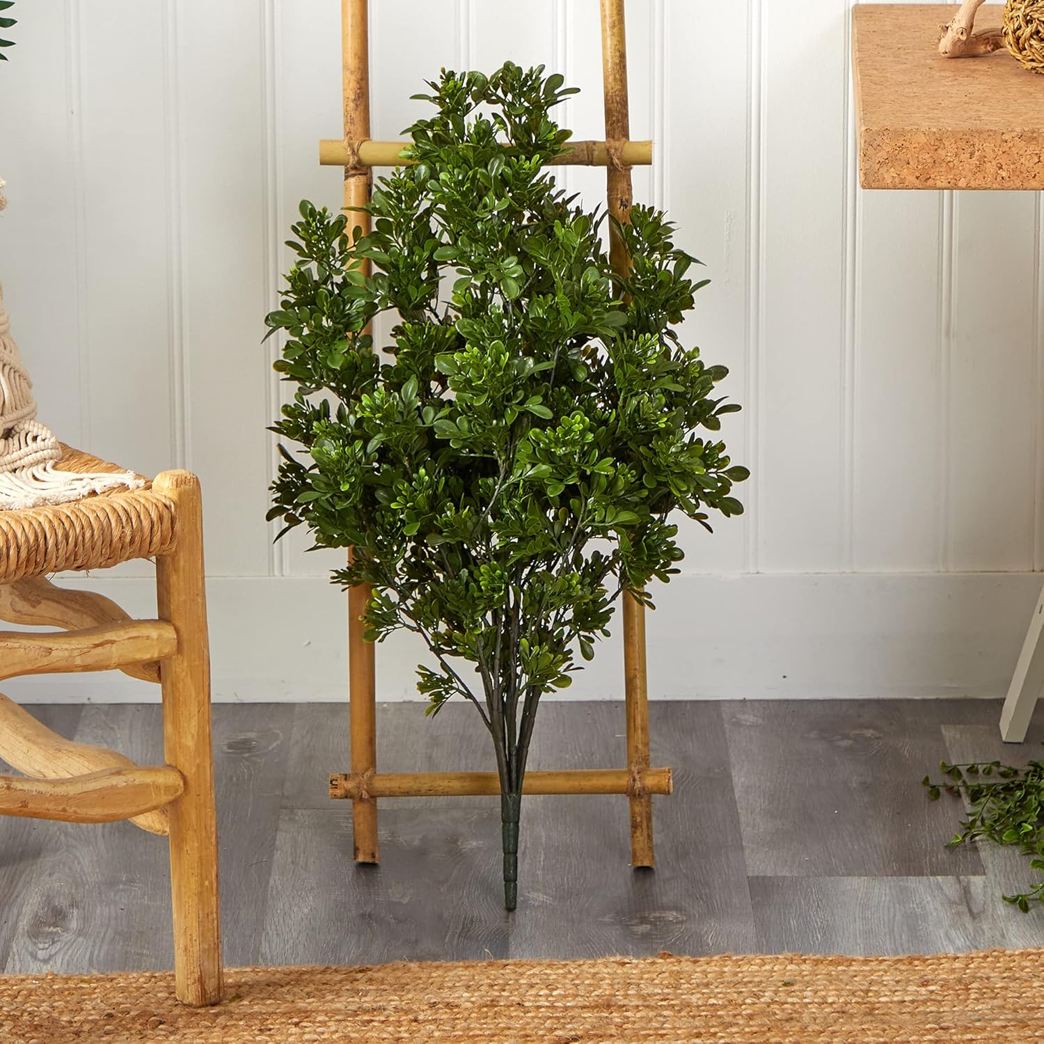 You might be running on tea all day, but don't mistake this faux tea leaf plant for lacking charisma. A scrub native to the Far East, the lifelike shrub injects texture and greenery to any indoor/outdoor space in need of some color. Inspired by nature, a dense collection of buds sprout from realistic-looking branches that have intricate detailing and allow you to shape. Standing 2.5ft. from a nursery planter (included in height), house in any table. Curate in a patio table, foyer, or table's end for a chic look. Artificial plants are manufactured using synthetic materials, such as polyester material or plastic, and are well designed and constructed to be life-like in appearance. This item will need to be re-shaped when removed from the secure box to allow it to reach its fullest size. Your artificial plant will look beautiful for years to come; simply wipe clean with a soft dry cloth when needed.