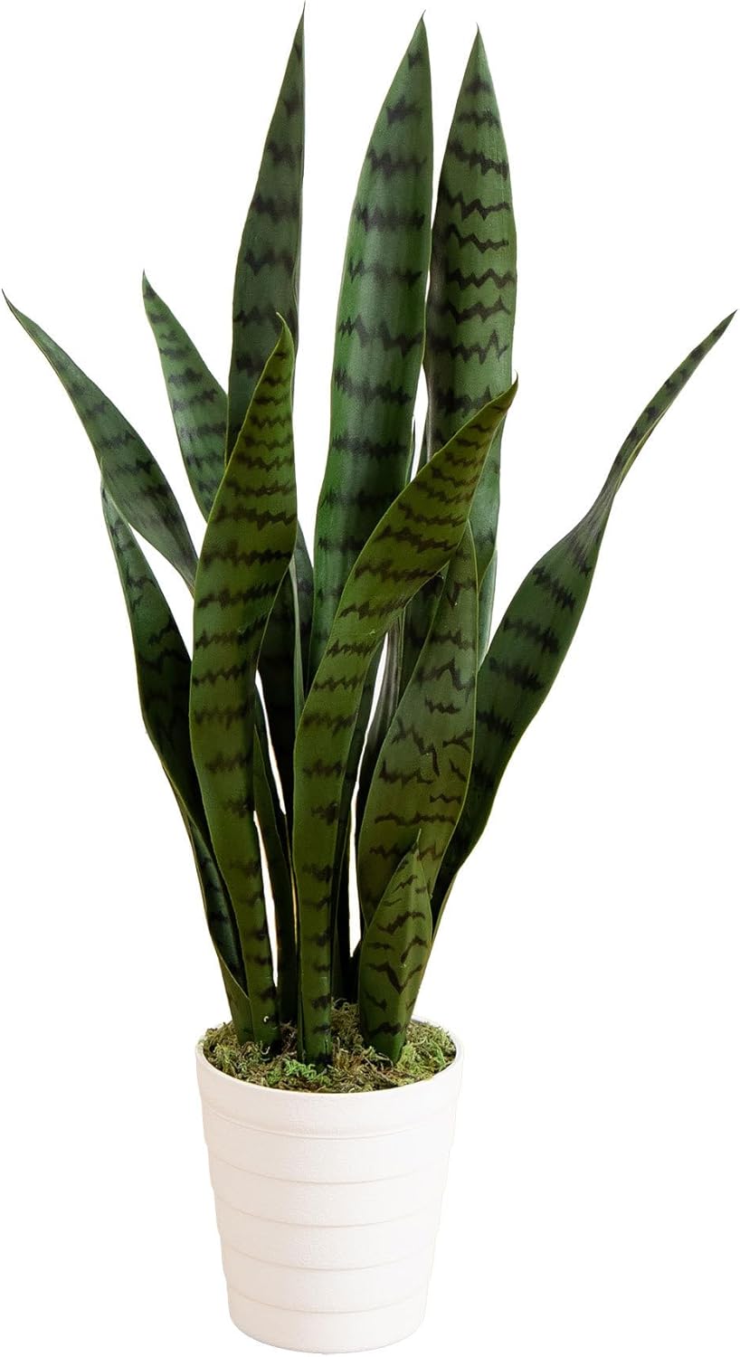 2-ft Artificial Snake Plant for Outdoors, Indoor/Outdoor UV Resistant Sansevieria, 24-in Faux Snake Plant for Outdoor Porch and Deck De