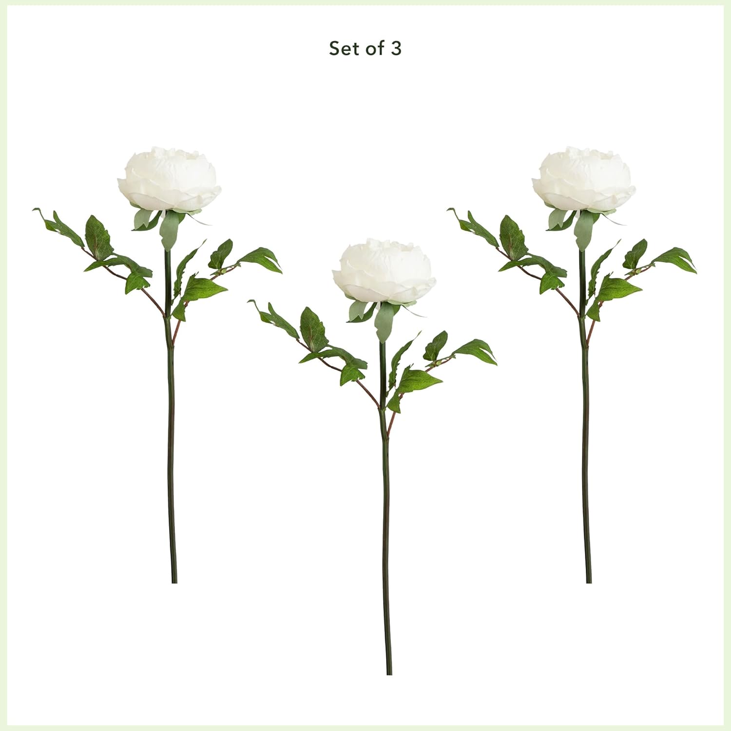 20-in Artificial Peony Flower Stems, Set of 3 Long Stem Artificial Flowers for Home or Office Décor, Faux Peony Flower Stems in White f No50