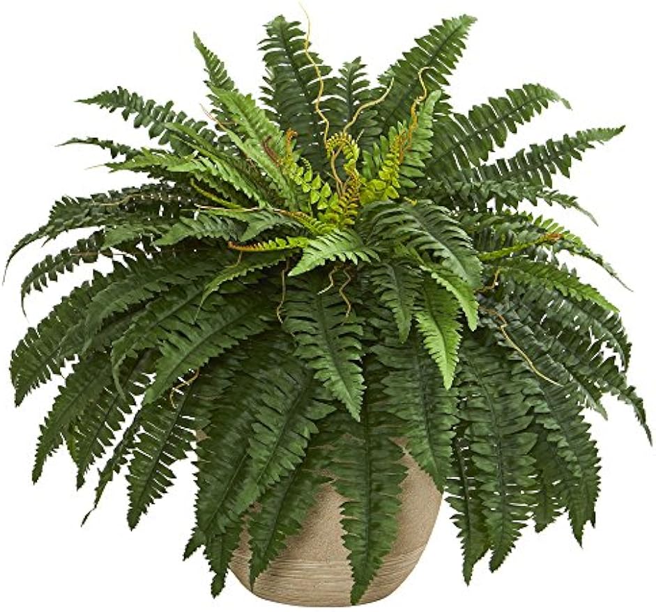 22" Boston Fern Artificial Plant In Sandstone Planter, Green