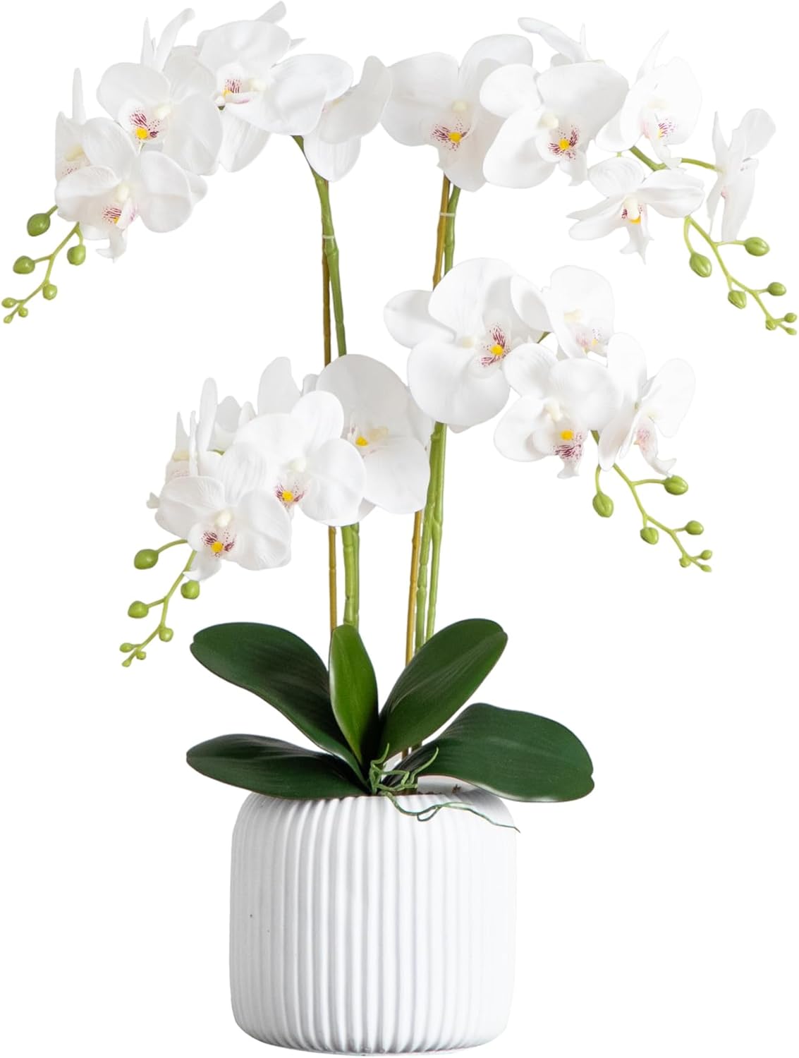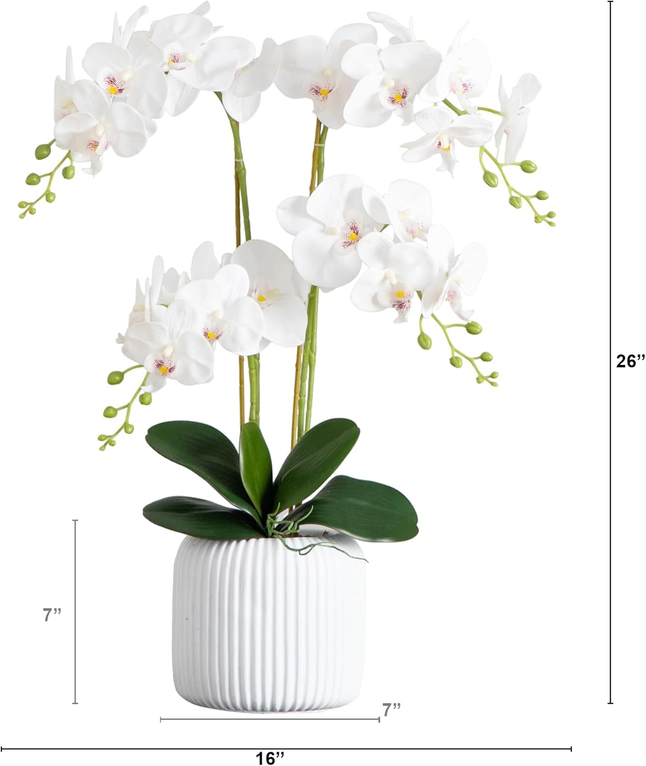 26-in Artificial Phalaenopsis Orchid Flower Arrangement in White Ceramic Decorative Planter, Fake Orchids That Look Real for Home & Off