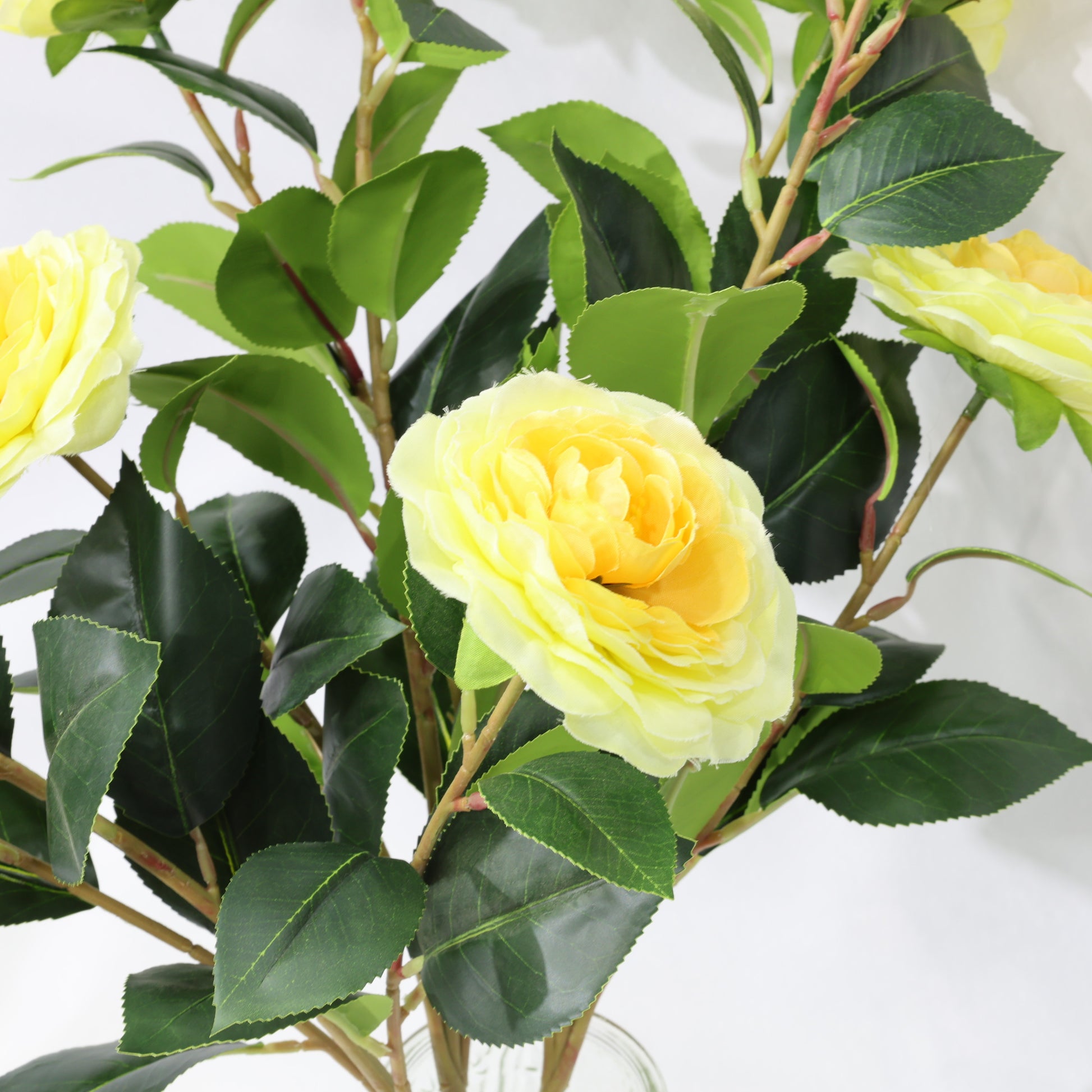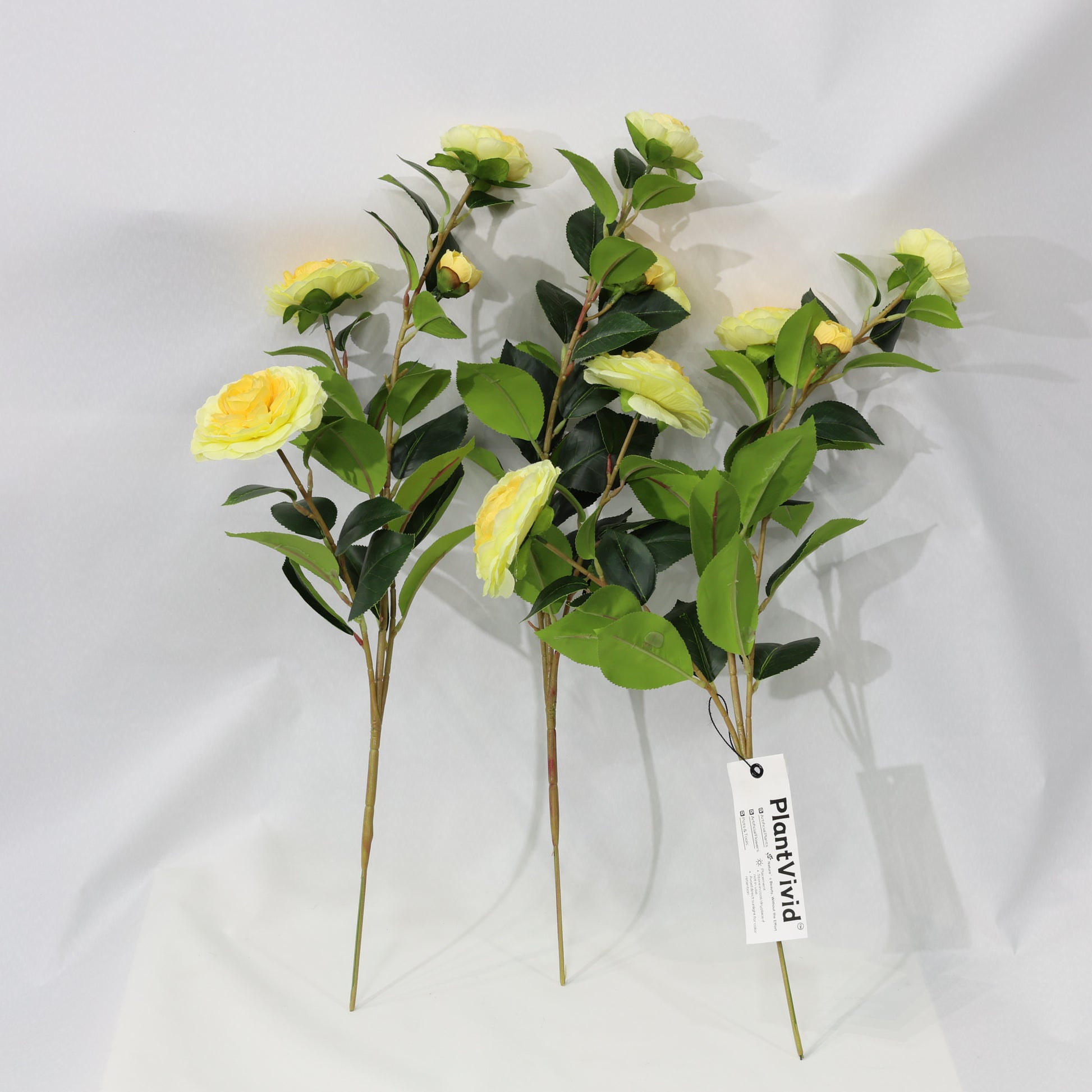 3 Pcs 60cm Faux leaf gradient yellow artificial camellia bouquets wedding decor