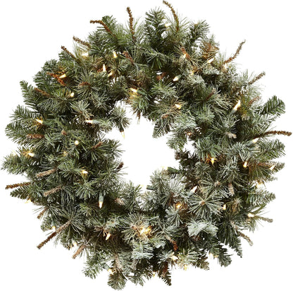 30in. Lighted Frosted Artificial Pine Wreath