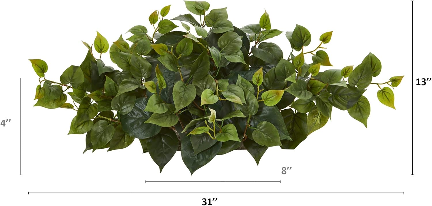 Highlight bare spaces with this artificial plant boasting a rich overgrowth of philodendron foliage in a palette of year-round evergreens. Set on decorative foam for easy placement, this silk plant reaches 31in. long.
