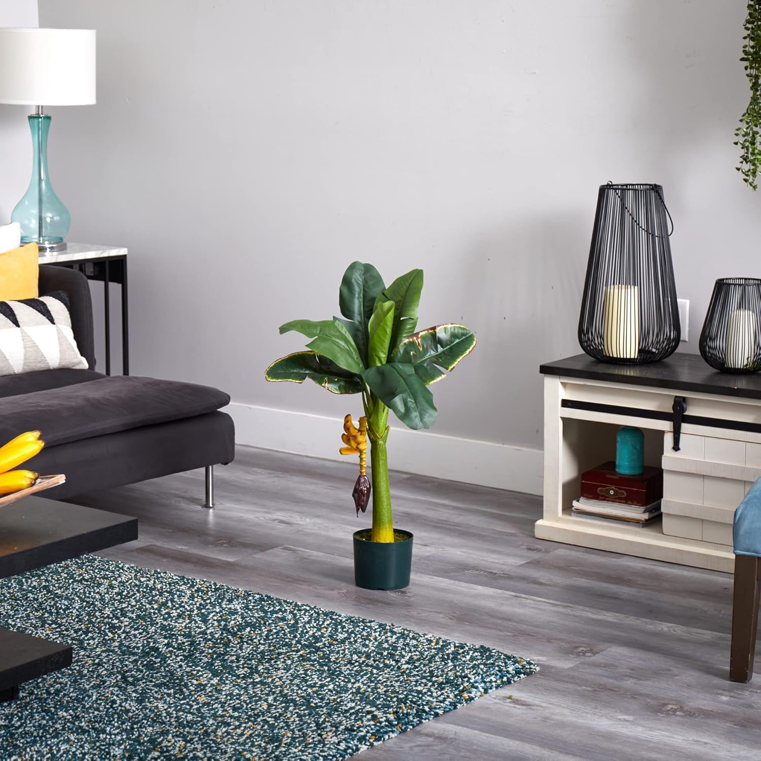 Hungry? Well, if so, we'd recommend heading for the fridge instead of this Banana Tree. Although we wouldn't blame you for trying to pick the fruit - it looks that real. With a strong center trunk, large leaves fanning out in every direction and some low-hanging fruit begging to be picked, this faux banana tree is ideal for your eclectic decor, be it home or office. makes an interesting gift as well.