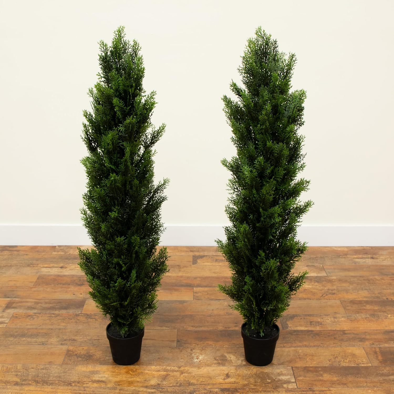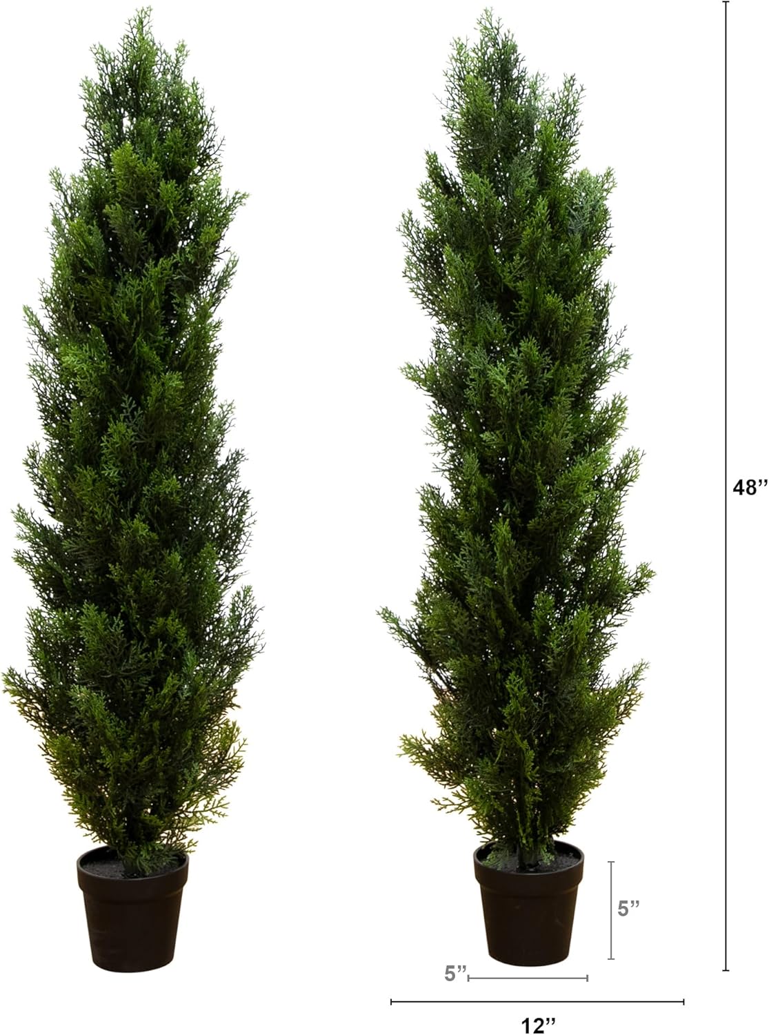 4ft Cedar Topiary Artificial Trees, UV Resistant, Indoor/Outdoor Decor, Set of 2, Wear-Resistant, Realistic Design, No Maintenance Requ