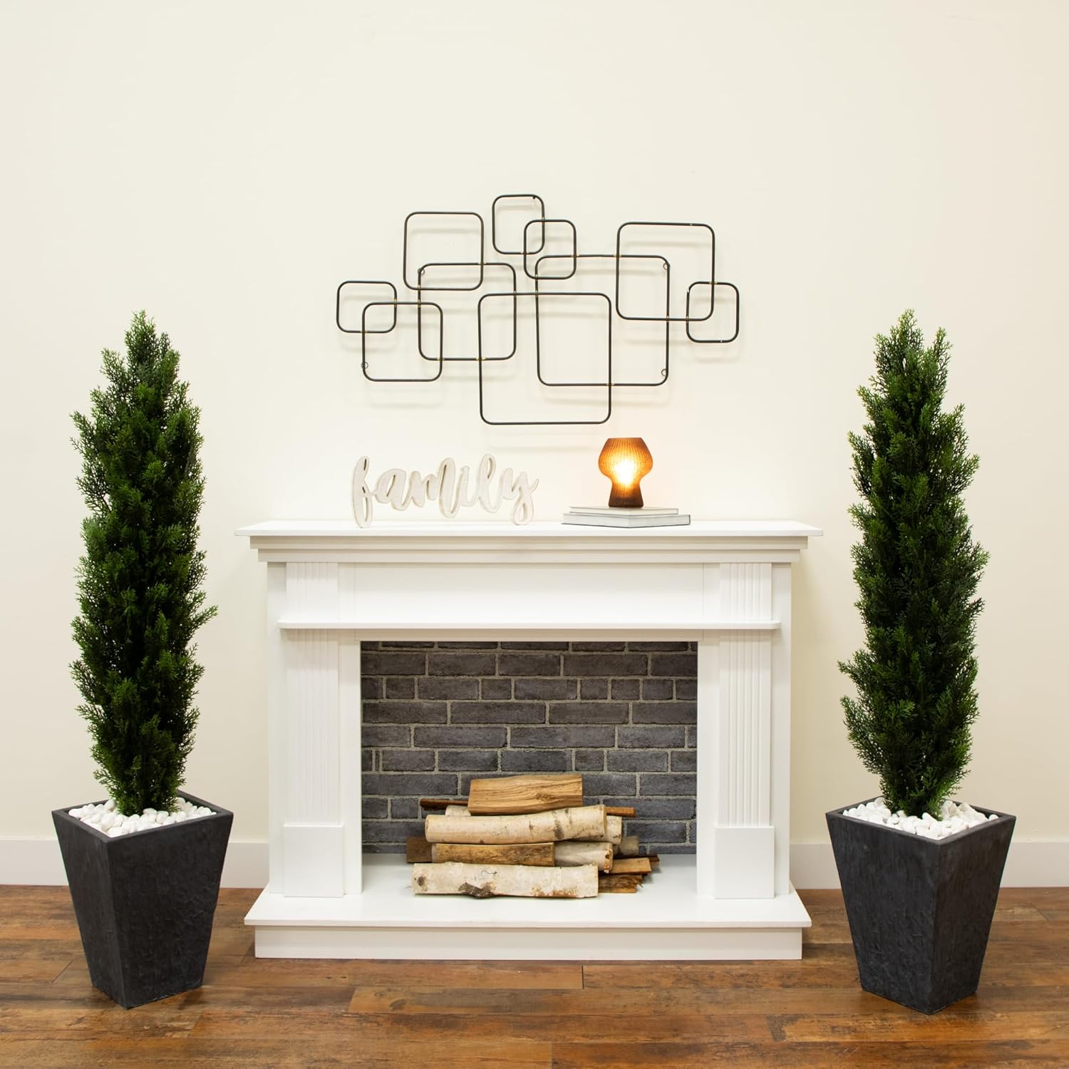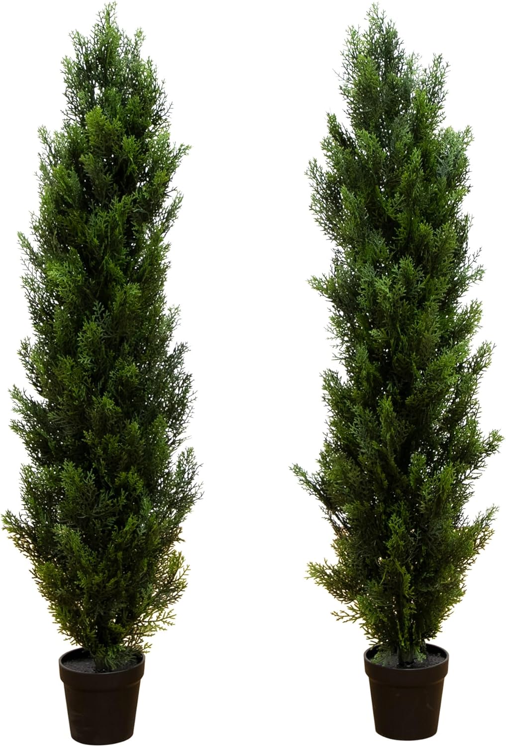Transform any space with our set of two 4ft Artificial Topiary Cedar Trees, a lush and lifelike addition to both indoor and outdoor settings. Crafted with meticulous attention to detail, each tree features 1,000 rich green tips, capturing the authentic texture and density of a natural cedar. These artificial trees are designed to withstand the elements, thanks to their UV-resistant construction, ensuring that their vibrant color and full-bodied shape endure through all seasons. Whether enhancing your home decor, flanking your entryway, or adding a touch of greenery to your patio, these trees offer a practical solution with all the beauty of real trees but none of the maintenance. They are perfect for busy individuals or those without a green thumb, providing a consistently fresh look without watering or pruning. Ideal for creating a serene atmosphere in living rooms, offices, or reception areas, these realistic fake trees also make thoughtful gifts for housewarmings or business openings. Enjoy the timeless elegance of cedar trees in your decor, effortlessly enhancing any environment with their enduring charm.