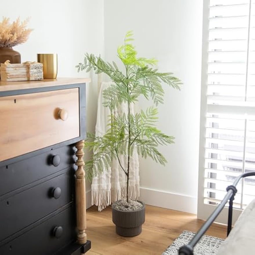 5ft Jacaranda Artificial Tree - Lifelike Green Leaves, Flexible Branches, Premium Craftsmanship, Includes Nursery Planter - Ideal for H