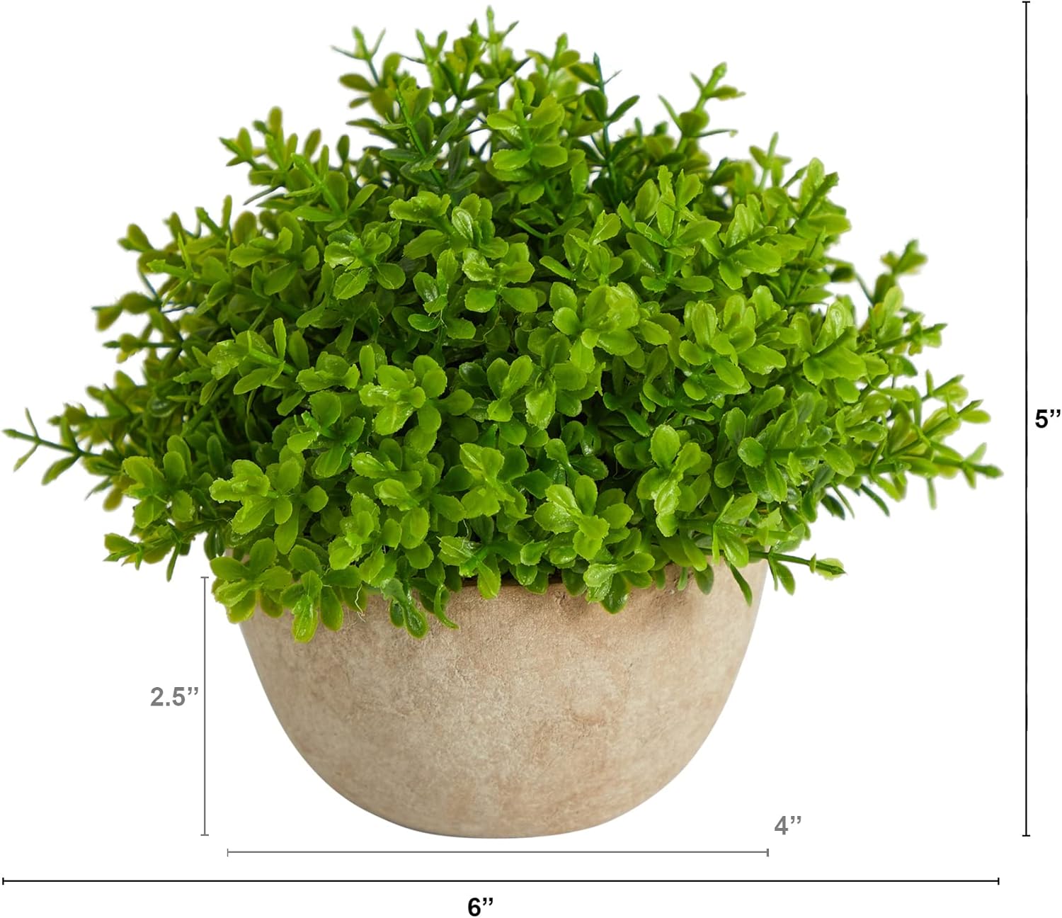 Accent any tight area with this Boxwood Artificial Plant. Inspired by nature, the leafy, verdant boxwood is incredibly lifelike with a full head of hair. Crafted from high-quality materials, watch as this busy, lush faux plant adds texture and depth to your space. Standing 5" from a decorative planter (included in height), place on any desktop. Ideal for an office, coffee table or an entryway. Silk plants are manufactured using synthetic materials, such as polyester material or plastic, and are well designed and constructed to be life-like in appearance. This item will need to be re-shaped when removed from the secure box to allow it to reach its fullest size. Your artificial plant will look beautiful for years to come; simply wipe clean with a soft dry cloth when needed.