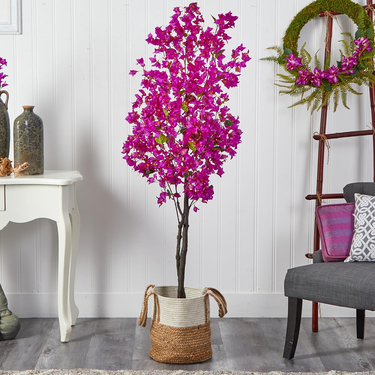 6ft. Artificial Bougainvillea Tree with Handmade Jute & Cotton Basket
