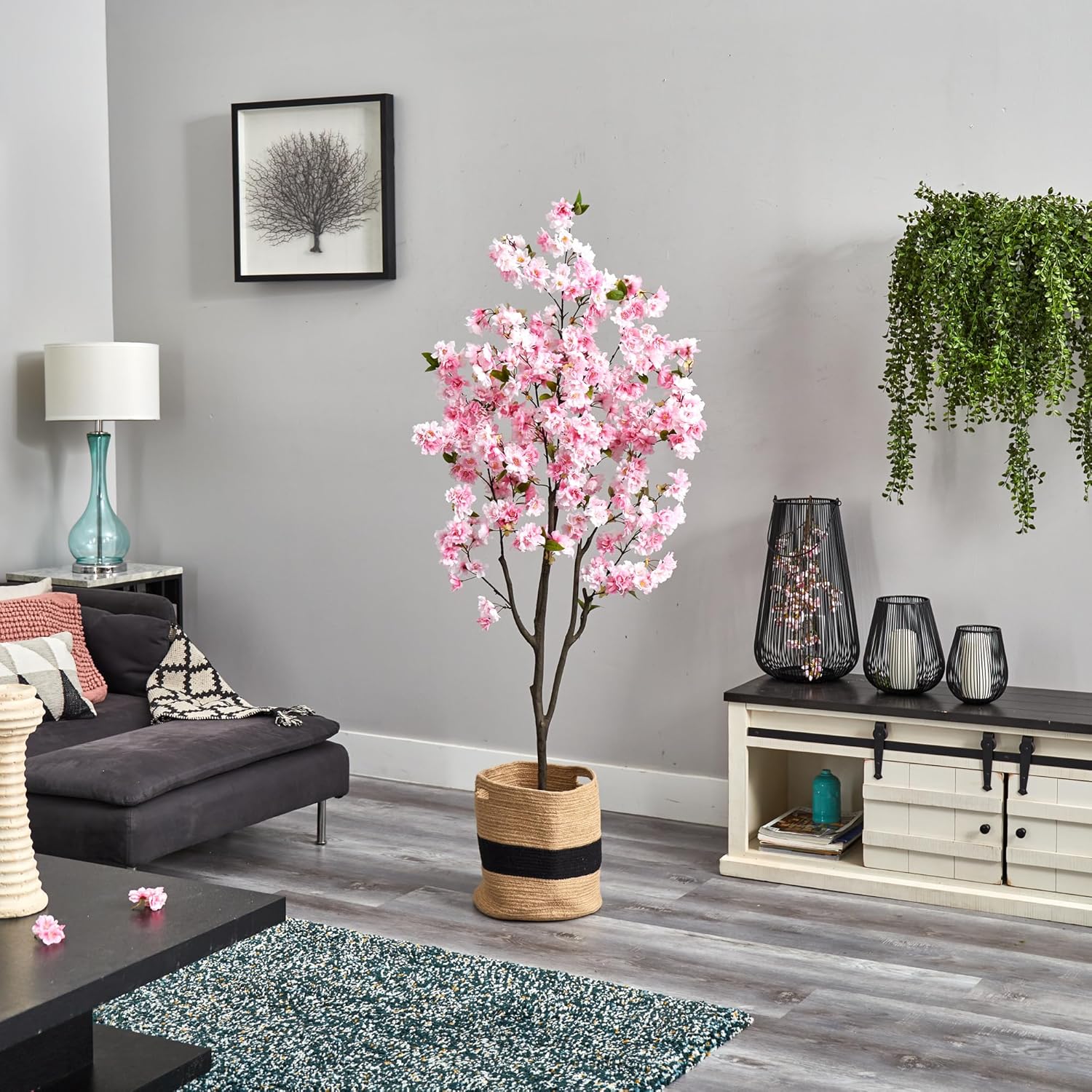 6ft. Artificial Cherry Blossom Tree with Handmade Jute & Cotton Basket