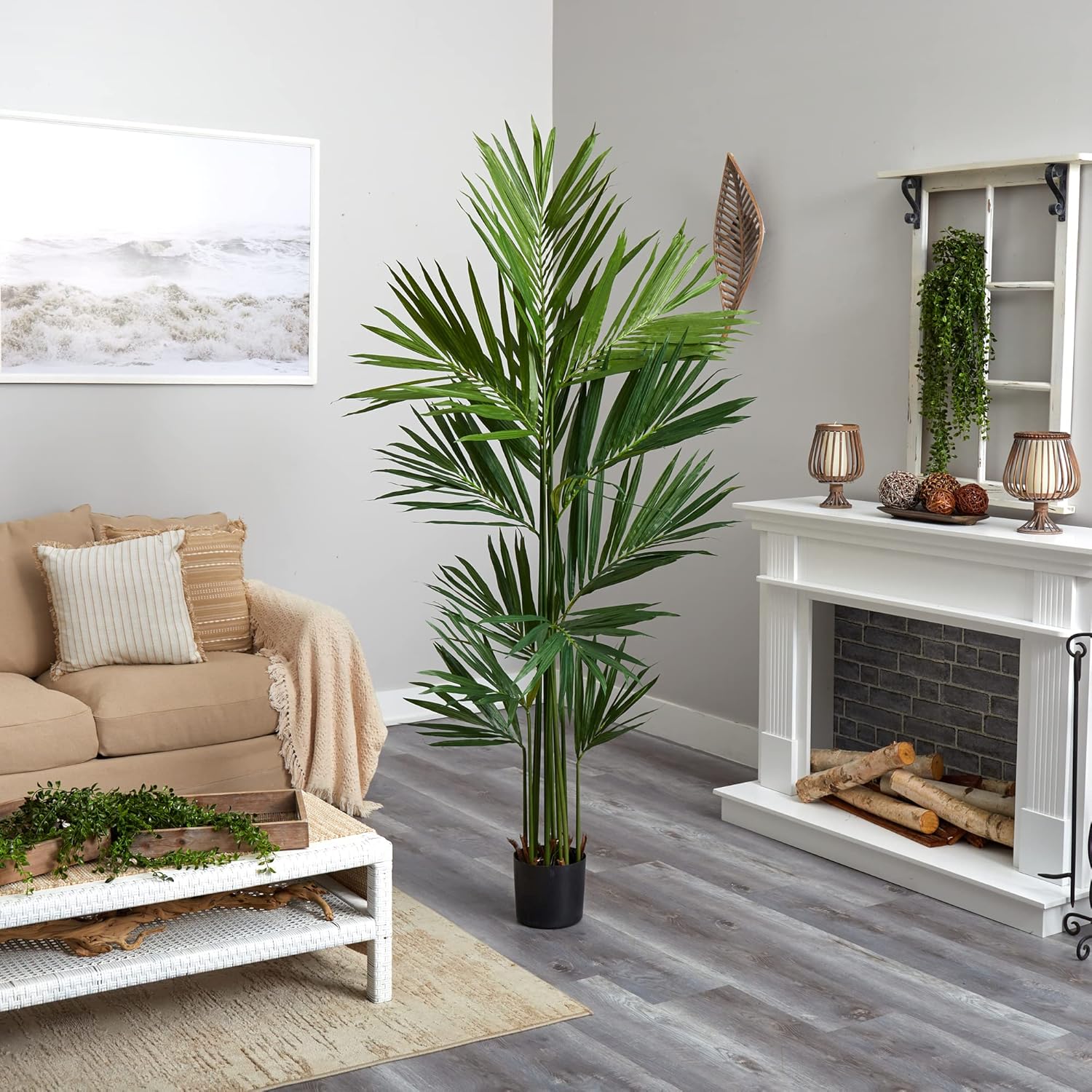 If you're looking for a "sunny" artificial plant addition to your home or office, then this slice of the tropics should suffice. This impressive kentia palm stands at a proud 7 feet tall, and is covered with 230 gorgeous leaves to bring back pleasant memories of favorite beach vacations. Never needing water, this palm looks good in any type of environment, and also makes a wonderful gift.