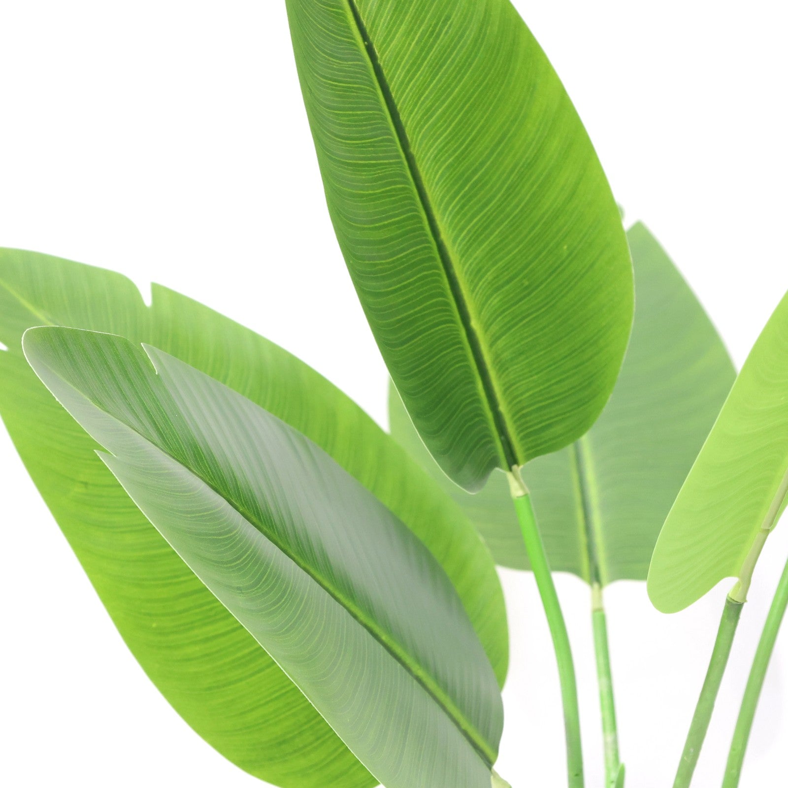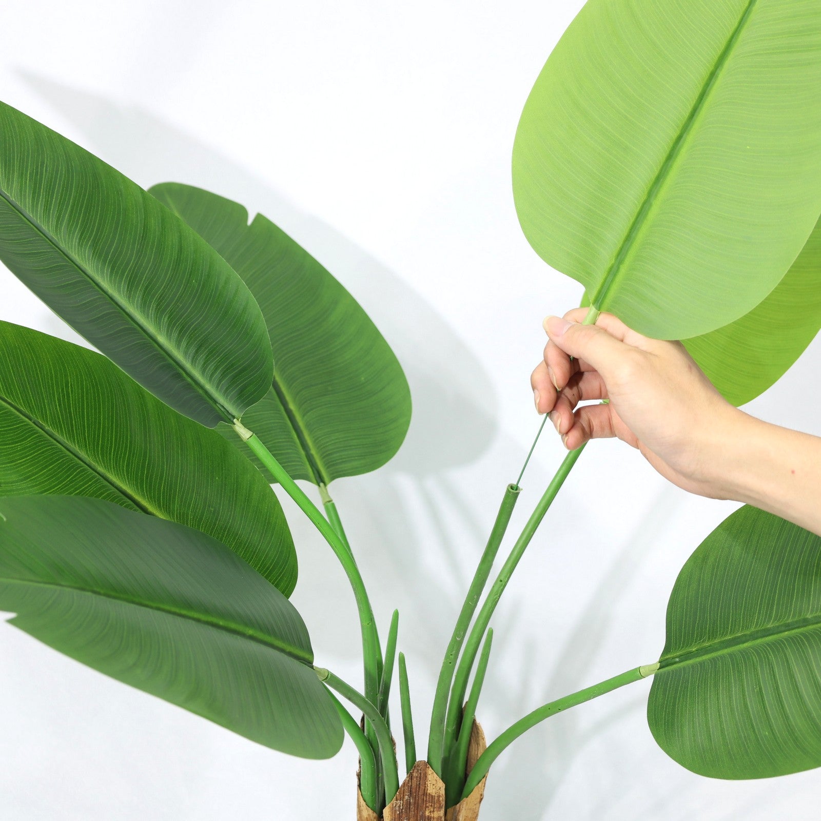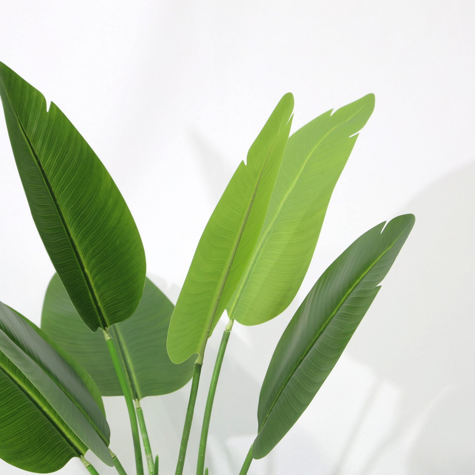 · Botanical Realism: Large palm-like leaves with natural color gradients and matte finishes, mimicking authentic travelers palm foliage
