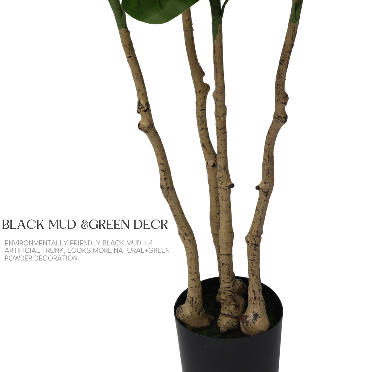 Ficus Lyrata Artificiale 170cm con 4 Tronchi e Grandi Foglie Verdi Scuro, Pianta Finta in Vaso per Decorazione Casa Ufficio Natale