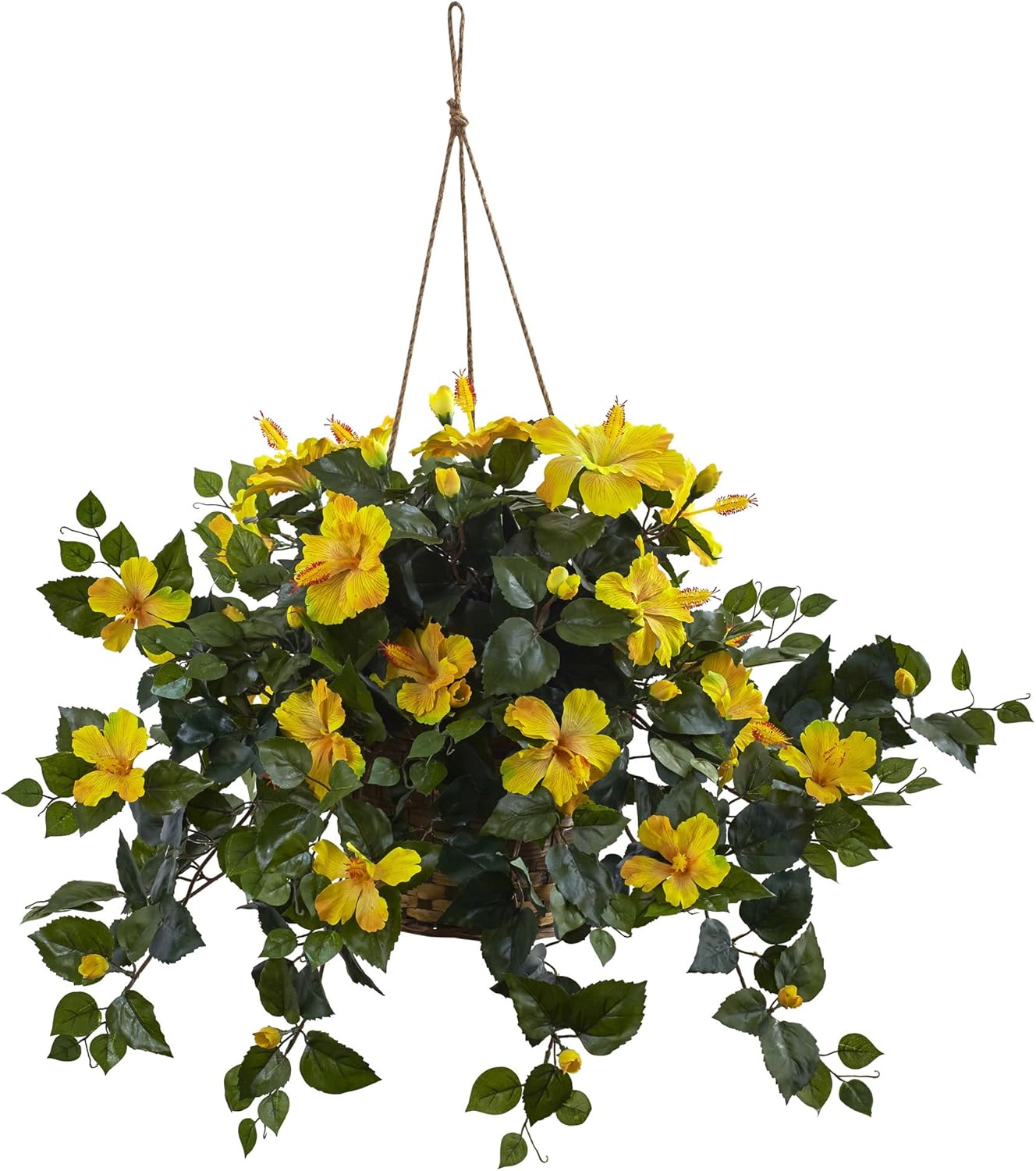Here's a classic that never goes out of style. A beautiful, full, 22" Hibiscus, forever captured in full bloom, in a decorative hanging basket. You'll love the "sunny" look of the blooms against the backdrop of lush greenery as they delicately hang down. Never needing water, this selection looks great anywhere - home or office, and also makes a fine gift.
