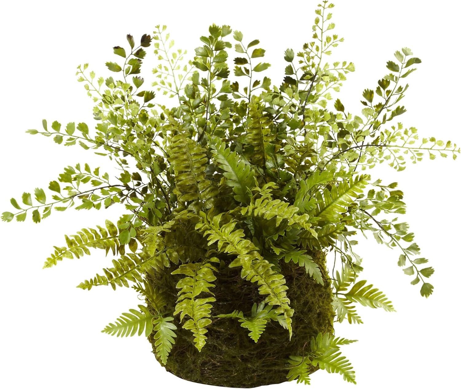 Nature at its finest! Subtle and earthy, this Mixed Fern with Twig and Moss Basket is sure to provide a natural wonder to your home or office for years to come. This selection of reproduced greenery is simple to take care of, requiring no water or special care, instead allowing its owner to simply enjoy its beauty by finding that “perfect spot” for it. Makes a great gift, too.