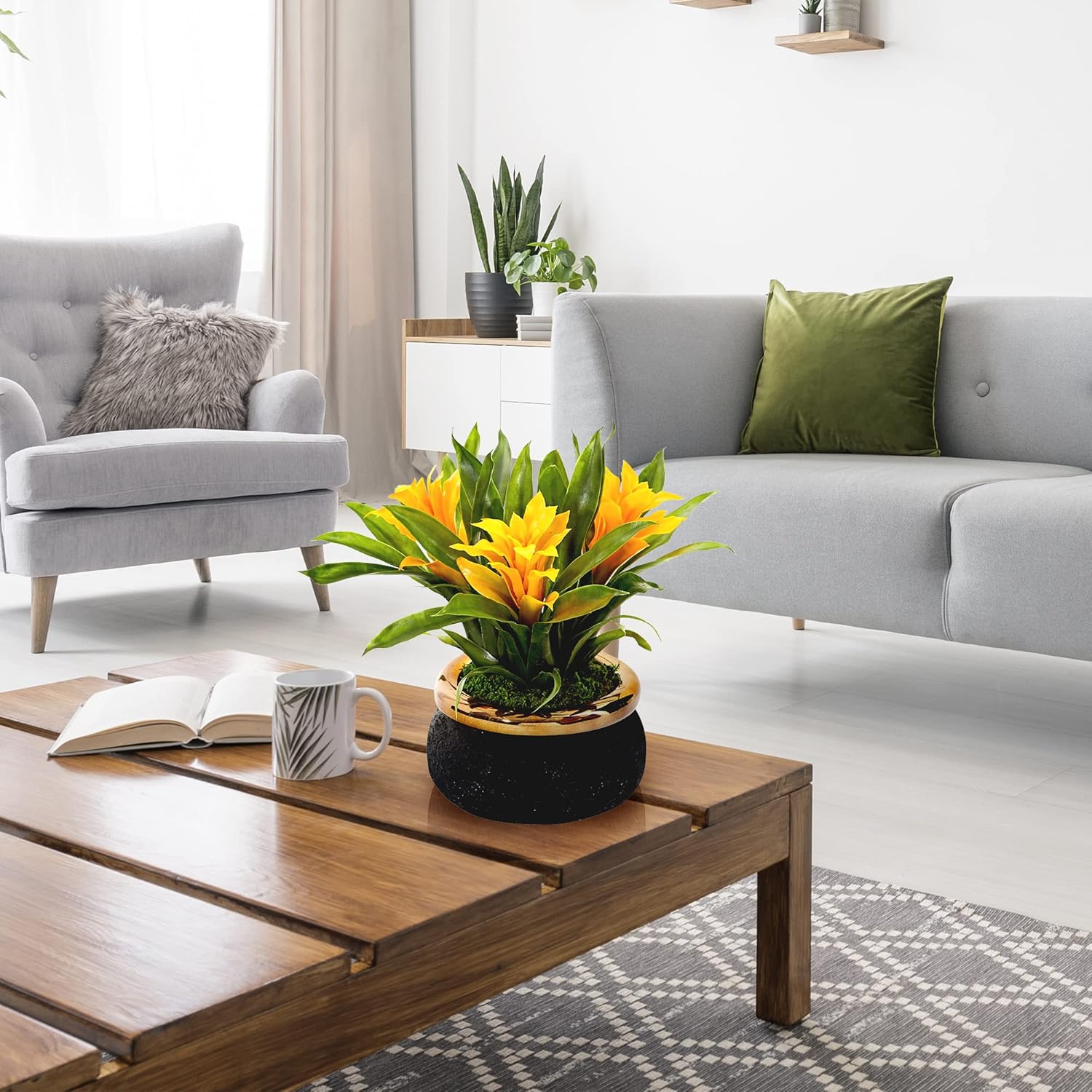 Inject striking color into your home with this artificial plant showcasing authentic looking details throughout its realistic looking foliage, handsomely complemented with faux bromeliad blossoms in bright, vivid hues. Standing 11in. high from a stoneware planter stabilized with natural moss, this silk plant would instantly freshen up tight spaces in a kitchen or dining room.