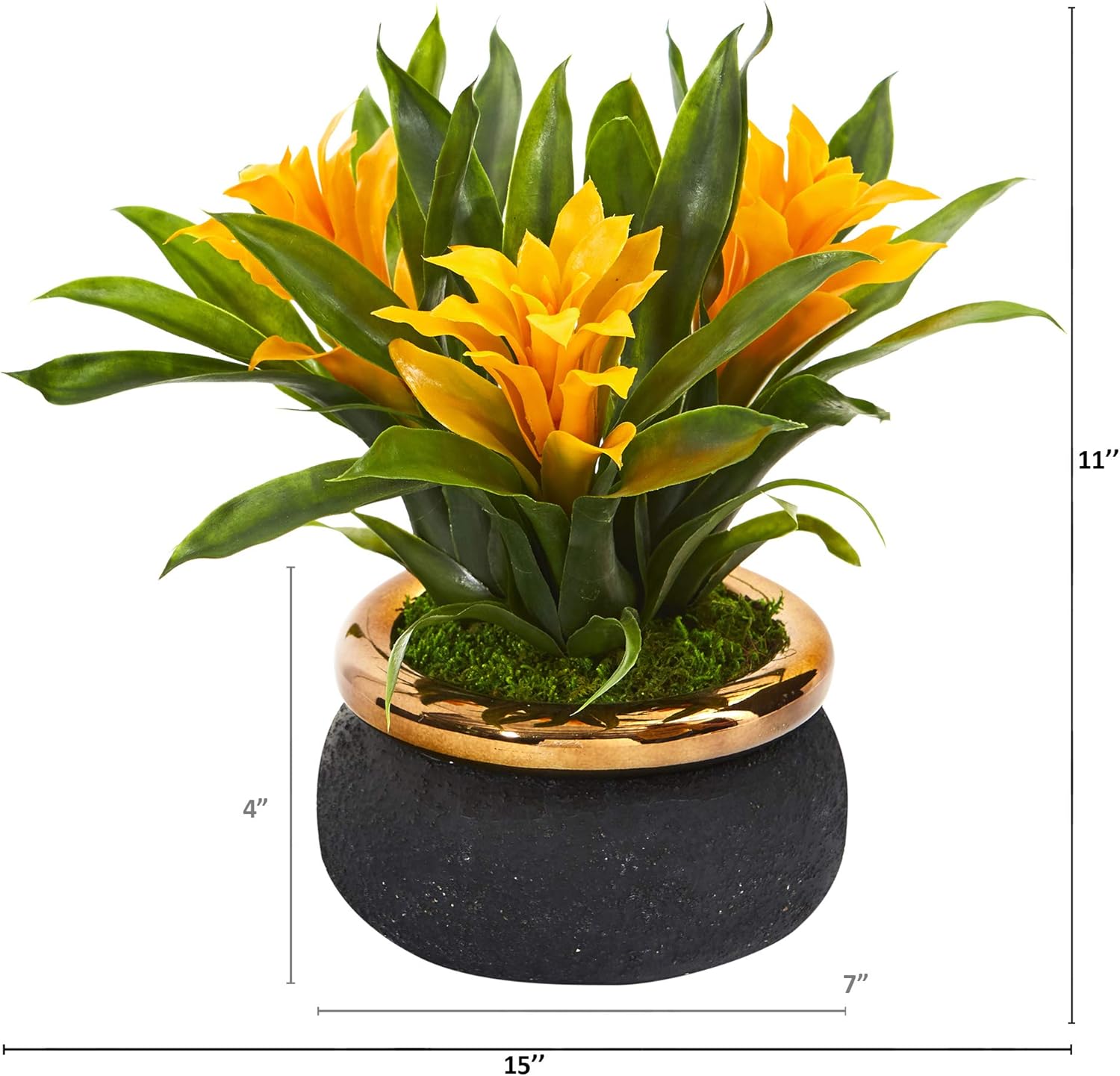 Nearly Natural 11in. Bromeliad Artificial Plant in Stoneware Planter No50