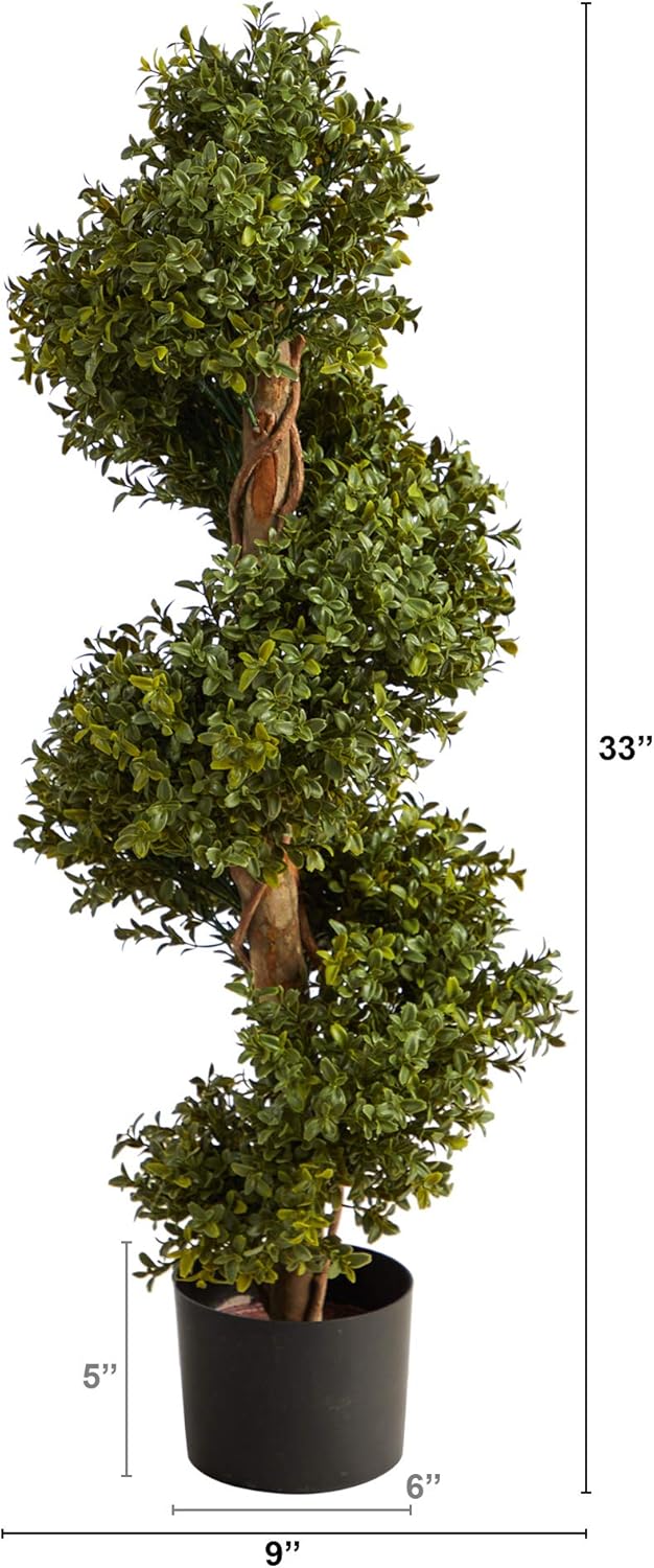 Nearly Natural 33in. Boxwood Topiary Spiral Artificial Tree (Indoor/Outdoor)