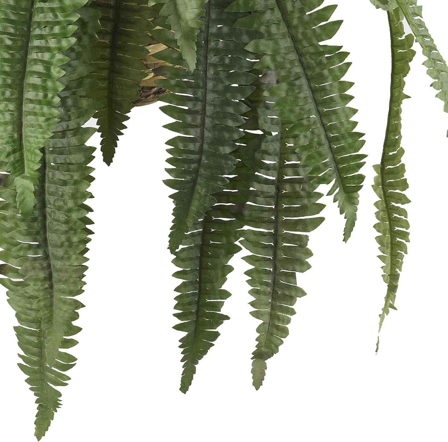 The Boston Fern is one of nature's best-loved ferns. The reasons are obvious - it's big, billowy, has pretty stems and leaves reach out and dip downward in a pleasing effect... no wonder they are used to decorate worldwide. This large Boston Fern hanging basket perfectly personifies everything we love about this plant, with the bonus of never needing water or sun. Makes a great gift as well. Silk arrangements are manufactured using synthetic materials, such as polyester material or plastic, and are well designed and constructed to be life-like in appearance. This item may need to be re-shaped when removed from the secure box to allow it to reach its fullest size. Your plant will look beautiful for years to come; simply wipe clean with a soft dry cloth when needed.