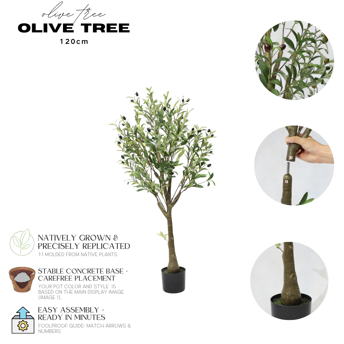 Olivo Artificiale Smontabile 120cm con Frutti Finti, Pianta Finta Verde in Vaso per Decorazione Casa Ufficio Natale