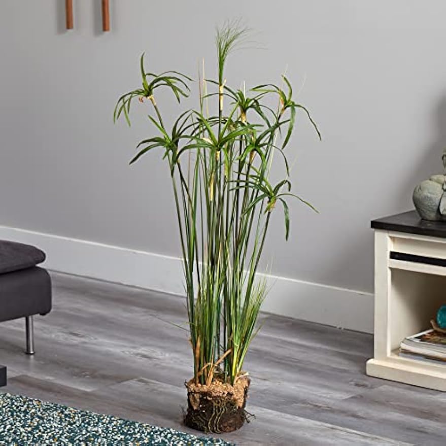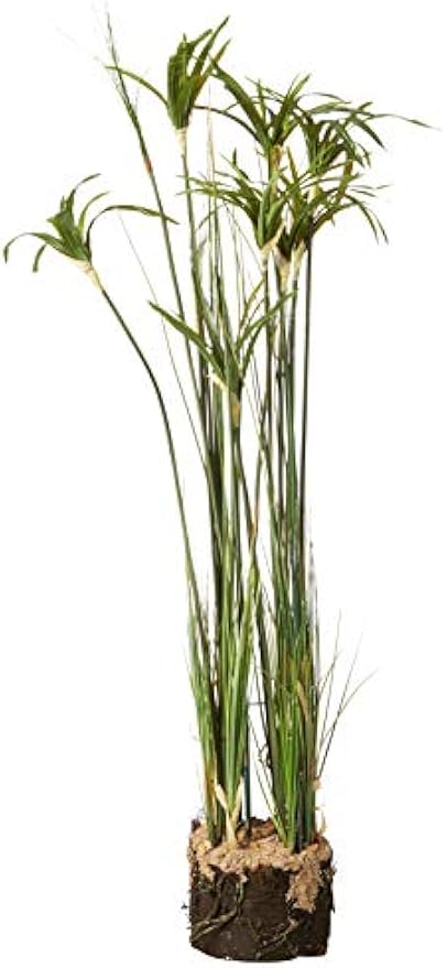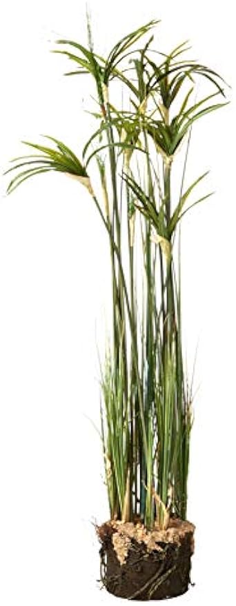 Standing a tall 48", this faux Papyrus plant features alternating stalks of greenery for added depth and dimension. Vibrant green hues mix with a faux dirt base for a realistic look. Place this stately plant in a glass vase or colorful urn to add height in a decorative display.