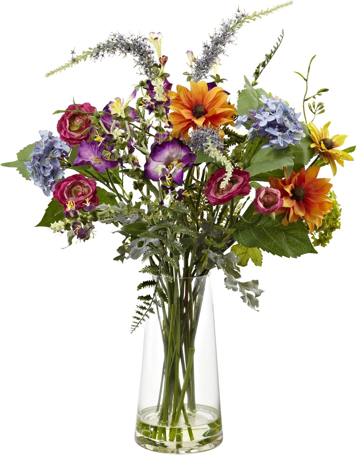 With its bright assembly of various and colorful flowers in a collection bursting with personality, this Spring Garden Floral is a real visual treat! Sitting 24 inches tall in its classic glass vase with Liquid Illusion faux water, this selection of beautiful flowers will put a smile on anyone’s face, especially for those who love a little splash of color to their day.