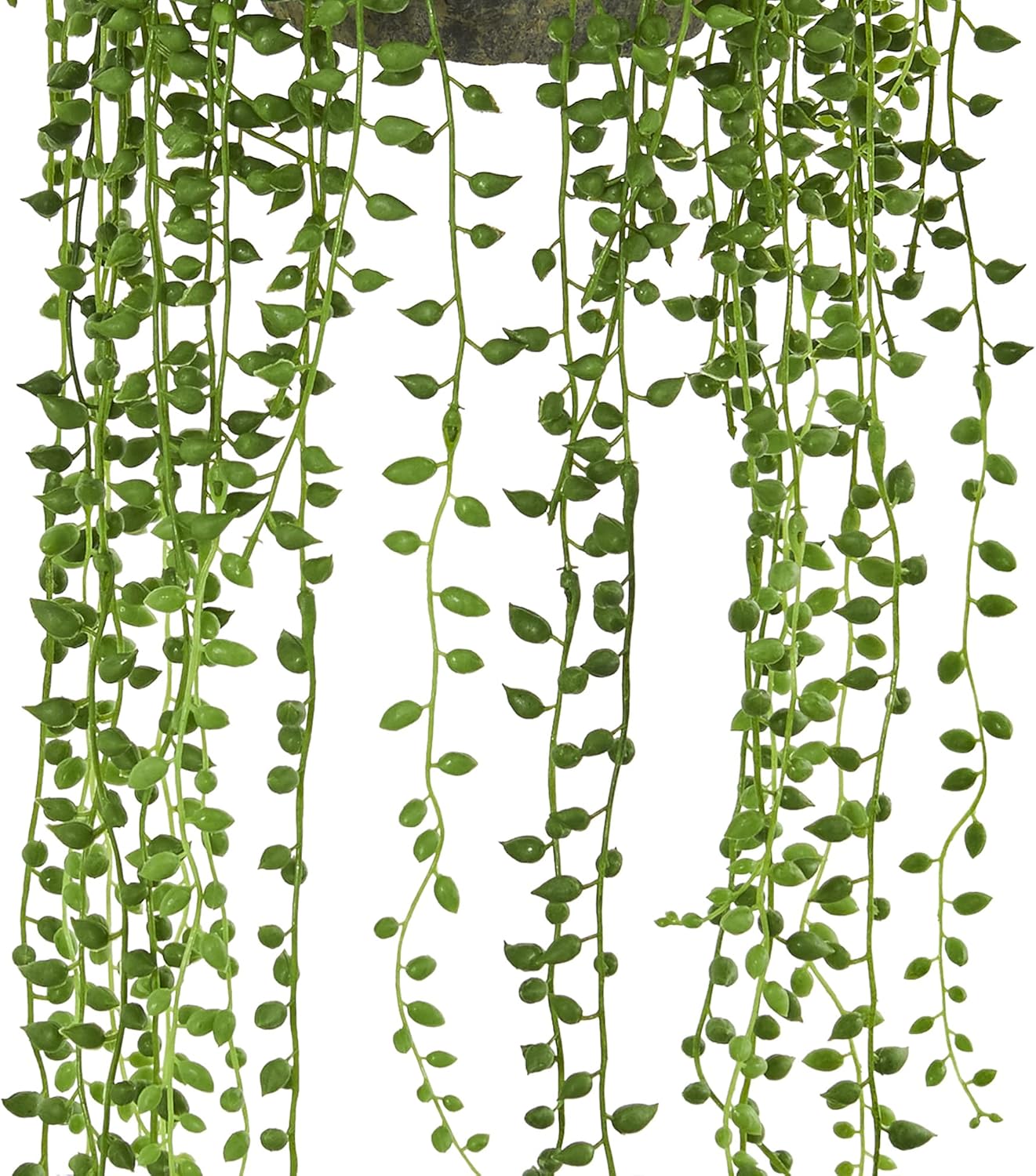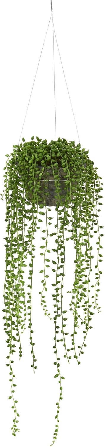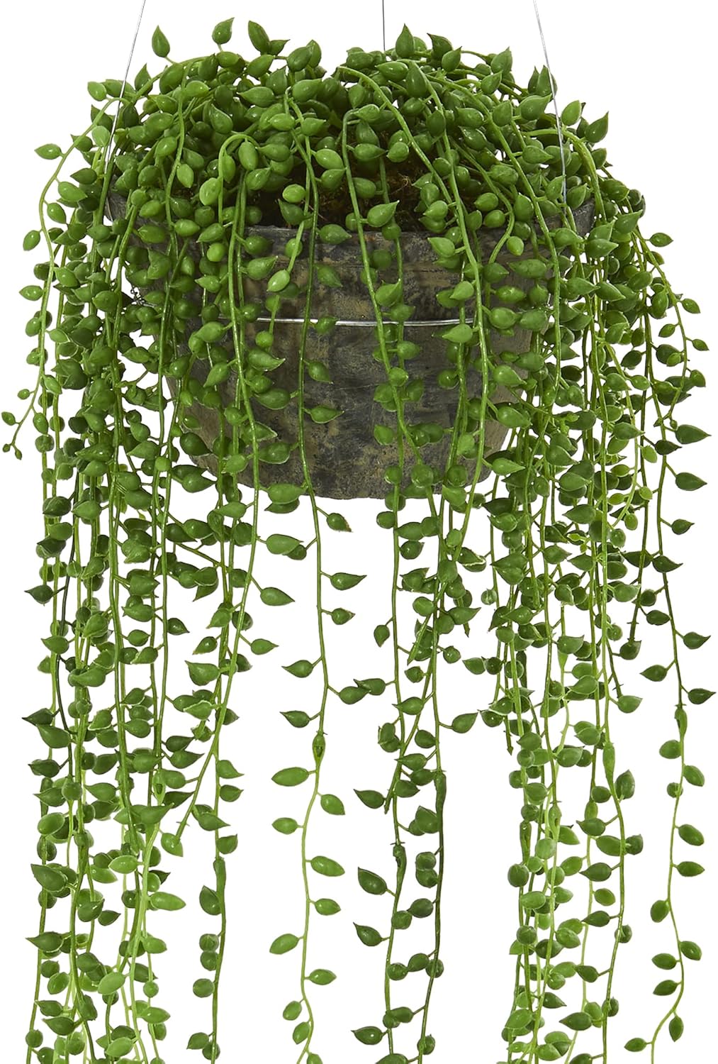 String of Pearl Hanging Basket Artificial Plant, 6 In. W x 6 In. D x 21 In. H, Green