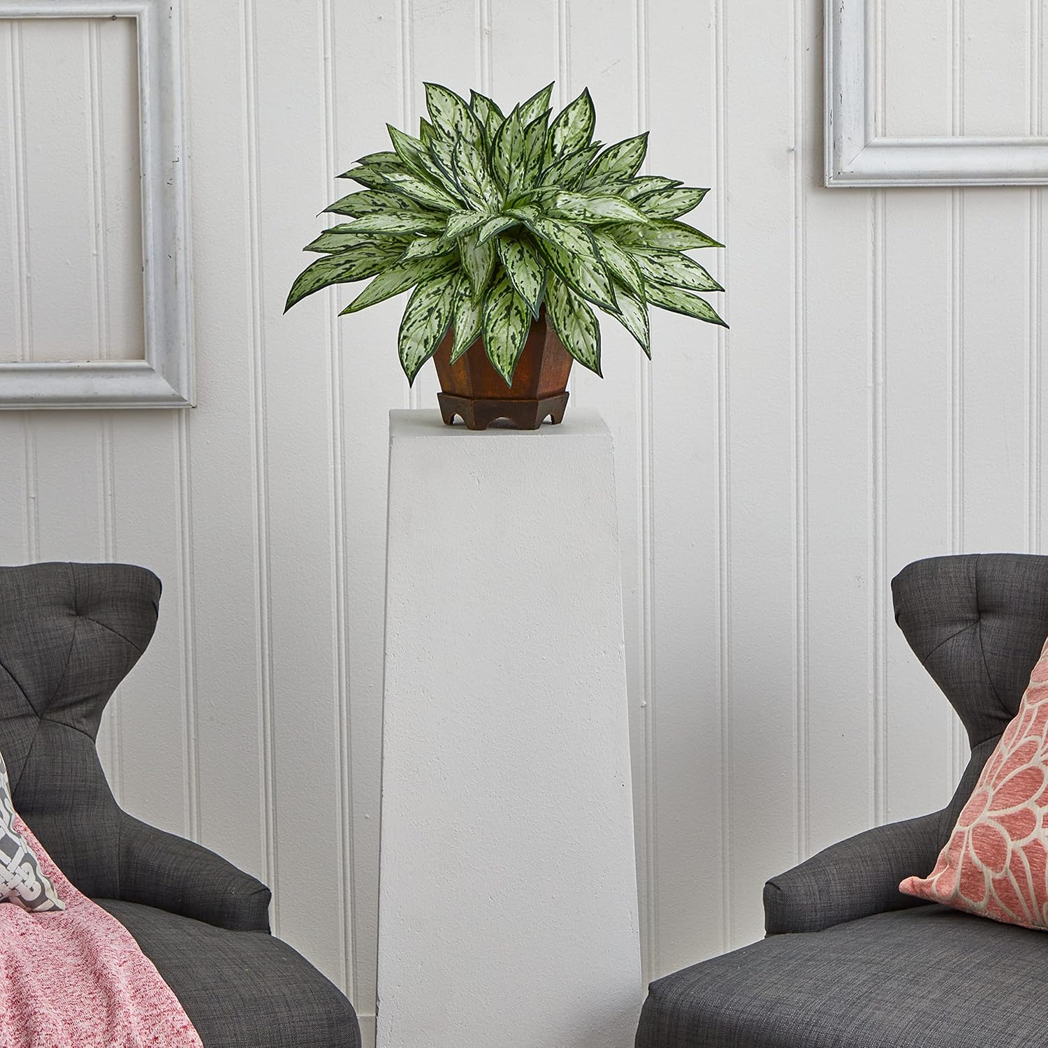 Someone once called this the King of our Silver Queens, and who are we to argue? It has the classic silver queen look - complete with lush, multi-colored leaves springing out in every direction – nestled snugly into a decorative hexagon planter. It’s a timeless look that will remain that way, needing nary a drop of water. This Silver Queen is indeed a princely piece fit for a king!!